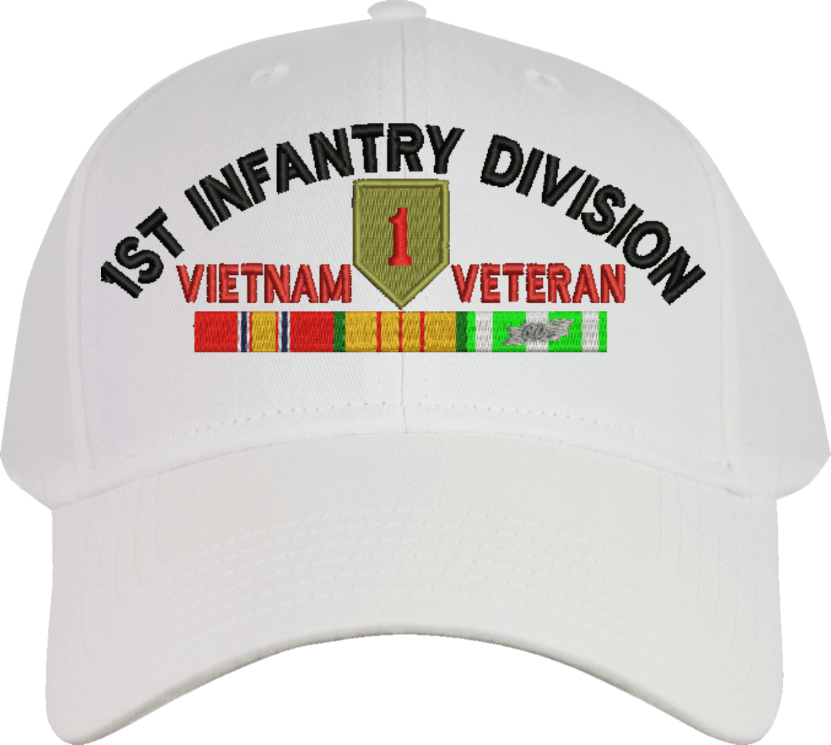 MilitaryBest is proud to offer this 1st Infantry Division Vietnam Veteran Embroidered Cap with Ribbons. This cap is available in a 5 panel high profile or 6 panel low profile styling. All our caps are made from top quality materials. This cap would make a wonderful addition to your collection or a great gift! All custom embroidery is done at our facility in Scottsboro, AL.