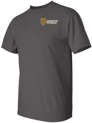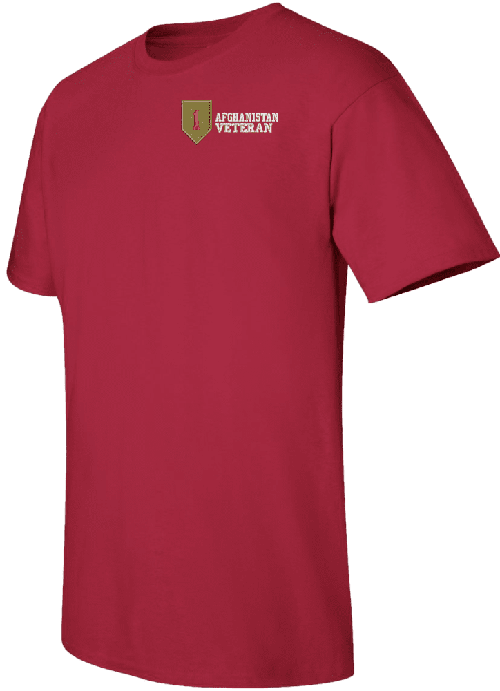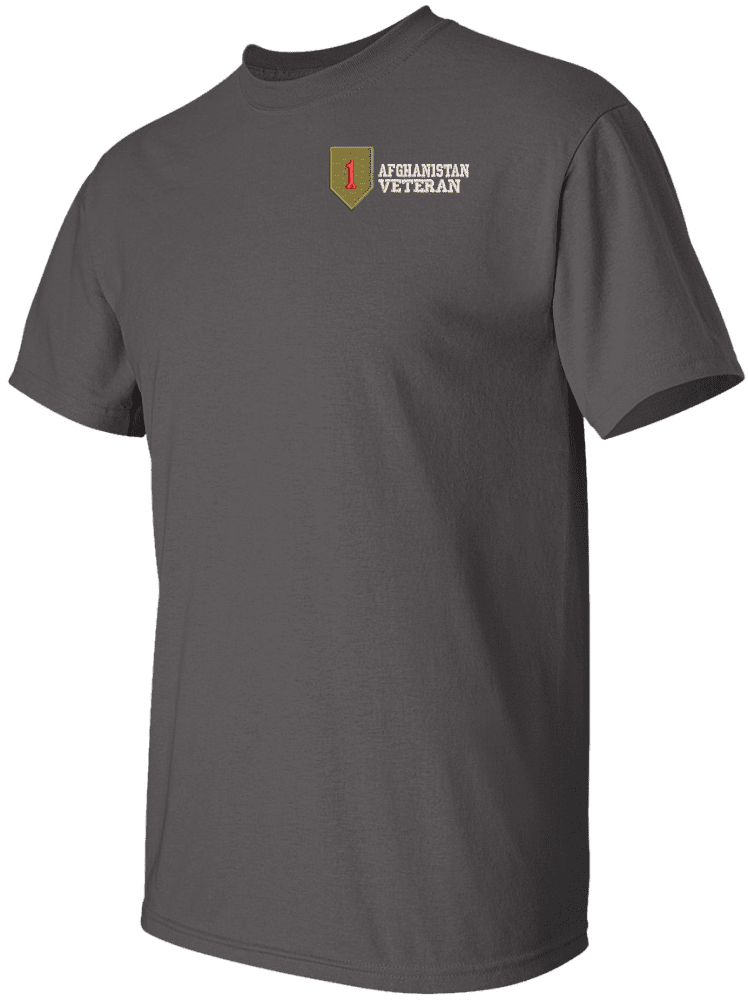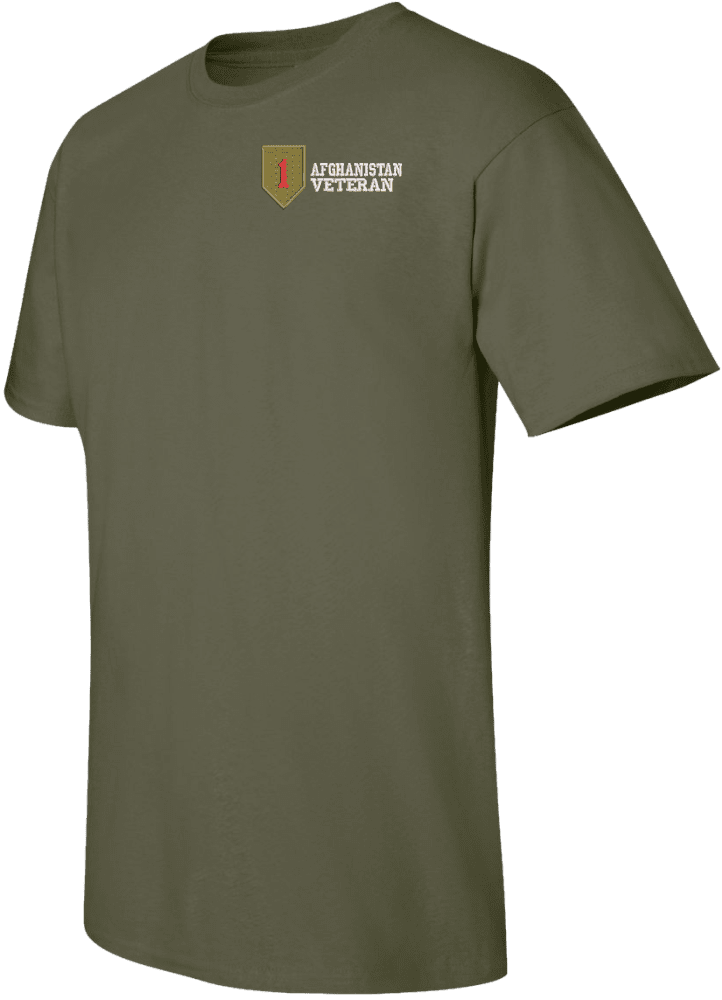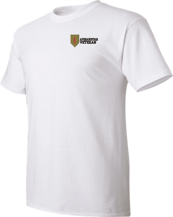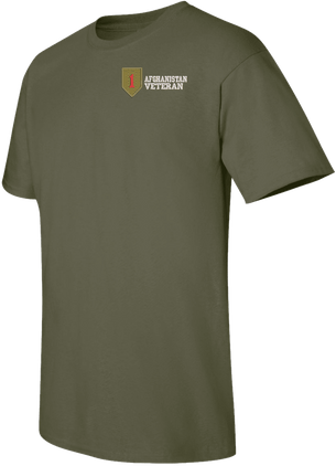 Note: Some of the Color Options pictured may not be available. Available Color Options are listed on the drop down menu above.MilitaryBest is proud to offer this quality 1st Infantry Division Afghanistan Veteran T Shirt. This Gildan brand short sleeve t-shirt is made using a 6 oz pre-shrunk 100% cotton material. These quality Military T Shirts are proudly embroidered at our facilities in Scottsboro, AL. Support the Army MWR program by purchasing only from Licensed Vendors.