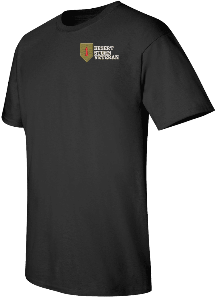 Note: Some of the Color Options pictured may not be available. Available Color Options are listed on the drop down menu above.MilitaryBest is proud to offer this quality 1st Infantry Division Desert Storm Veteran T Shirt. This Gildan brand short sleeve t-shirt is made using a 6 oz pre-shrunk 100% cotton material. These quality Military T Shirts are proudly embroidered at our facilities in Scottsboro, AL. Support the Army MWR program by purchasing only from Licensed Vendors.