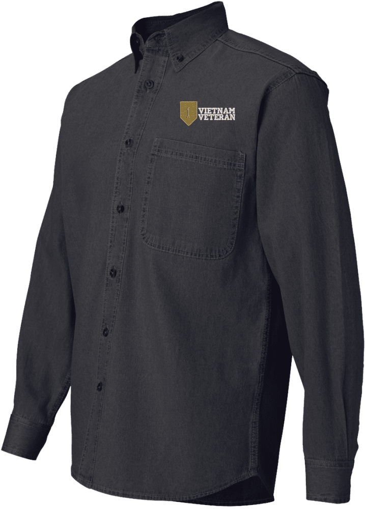 Note: Some of the Color Options pictured may not be available. Available Color Options are listed on the drop down menu above.MilitaryBest is proud to offer this quality 1st Infantry Division Vietnam Veteran Denim Shirt. This long sleeve button down denim shirt is made using a 100% cotton denim material. These quality Military Denim Shirts are proudly embroidered at our facilities in Scottsboro, AL. Support the Army MWR program by purchasing only from Licensed Vendors.