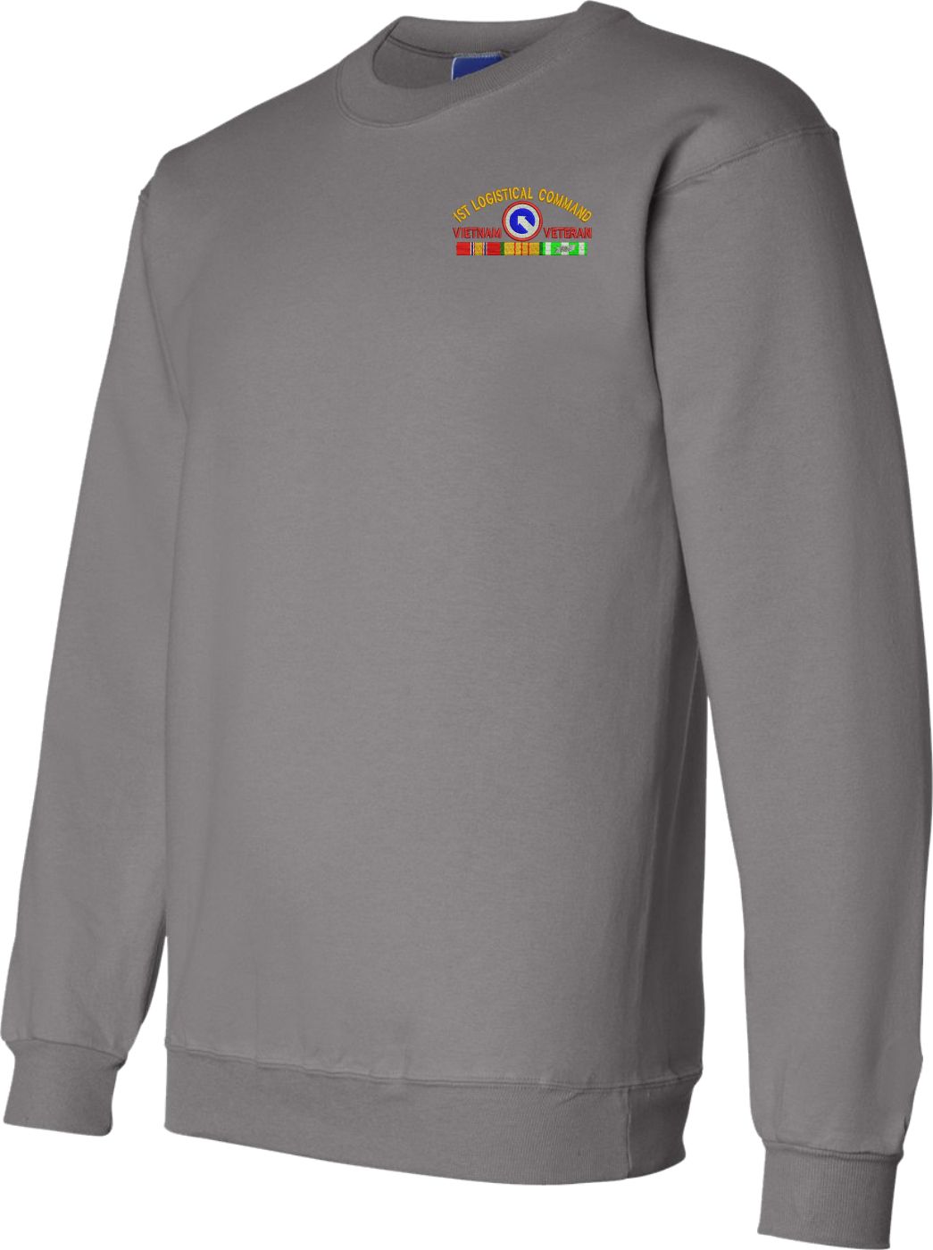 MilitaryBest has expanded its line of apparel with this custom embroidered U.S. Army 1st Logistical Command Vietnam Veteran with Ribbons Embroidered Sweatshirt. This Sweatshirt will make an excellent addition to your wardrobe, or a great gift. Your satisfaction is Guaranteed! These quality sweatshirts are proudly embroidered at our facilities in Scottsboro, AL. Support the Army MWR program by purchasing only from Licensed Vendors. To all of our Vietnam Veterans, Welcome Home!
