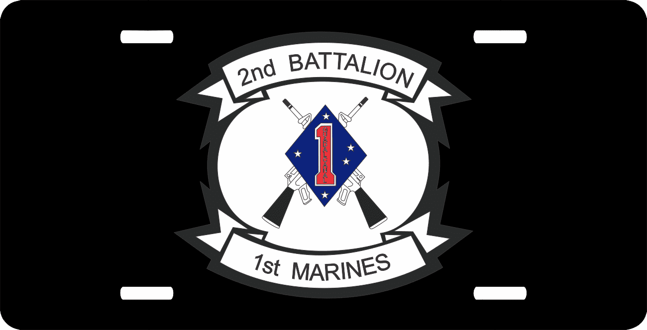 This 1st Marine Division 2nd Battalion 1st Marines License Plate is made from heavy gauge aluminum and has a baked enamel finish to last for many years of use. Each plate measures 5 15/16" x 11 15/16". This license plate would make a wonderful addition to your collection or a great gift.