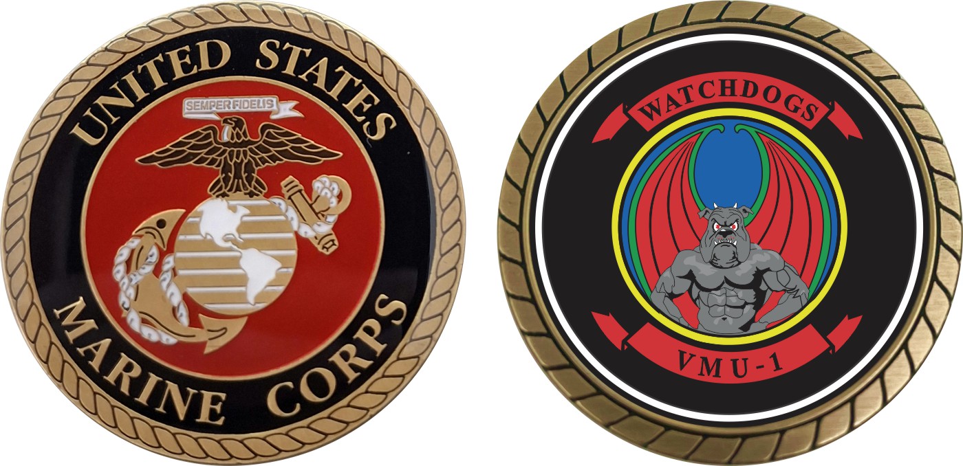 This 1 3/4” 1st Marine Division Marine Unmanned Aerial Vehicle Squadron 1 of MACG 38 Challenge Coin is proudly offered by Militarybest. This Officially Licensed Marine Corps coin has beautiful enamel finish on one side and an organized crisp clean design on the opposite side.