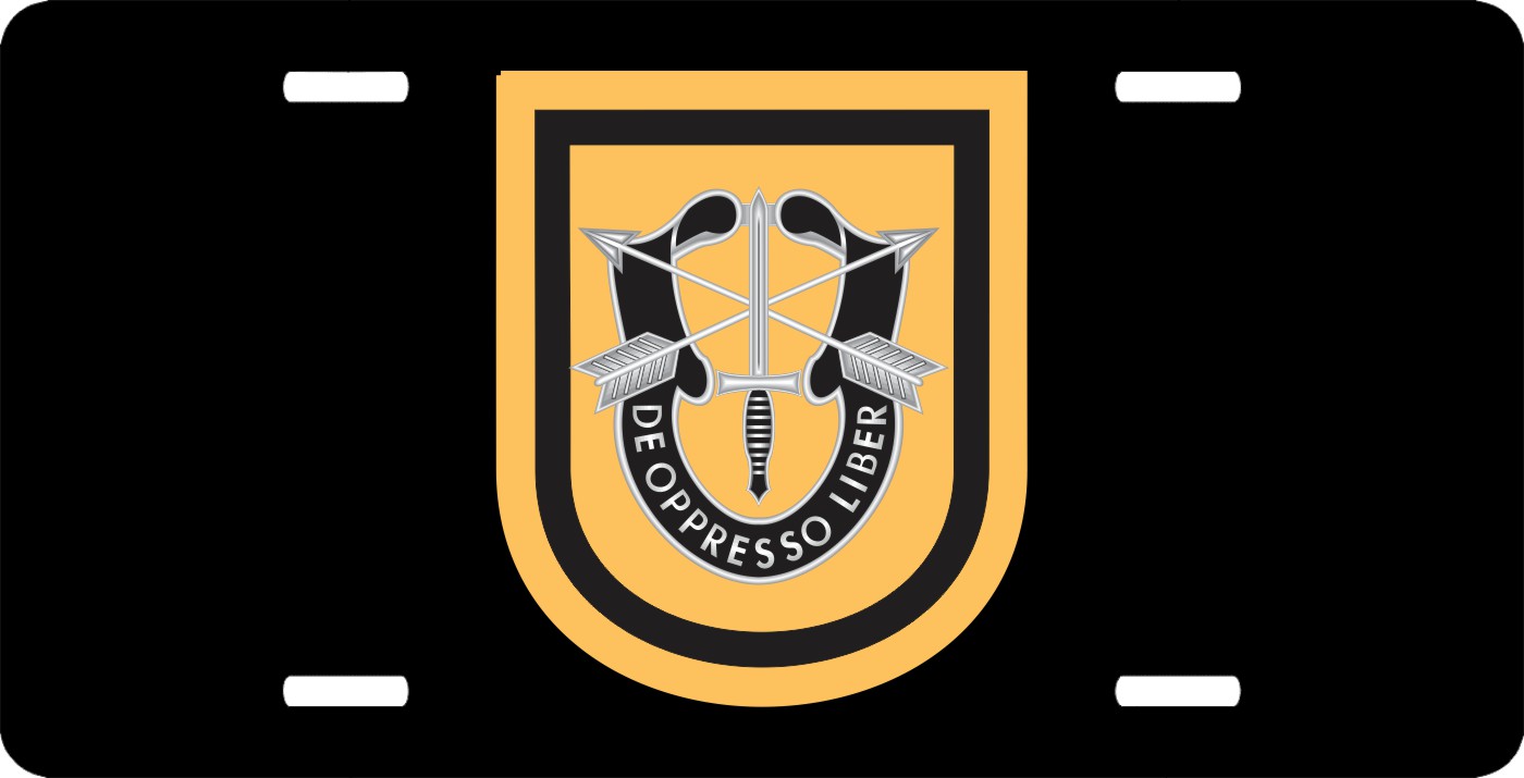 This 1st Special Forces Group Flash License Plate is made from heavy gauge aluminum and has a baked enamel finish to last for many years of use. Each plate measures 5 15/16" x 11 15/16". This license plate would make a wonderful addition to your collection or a great gift.