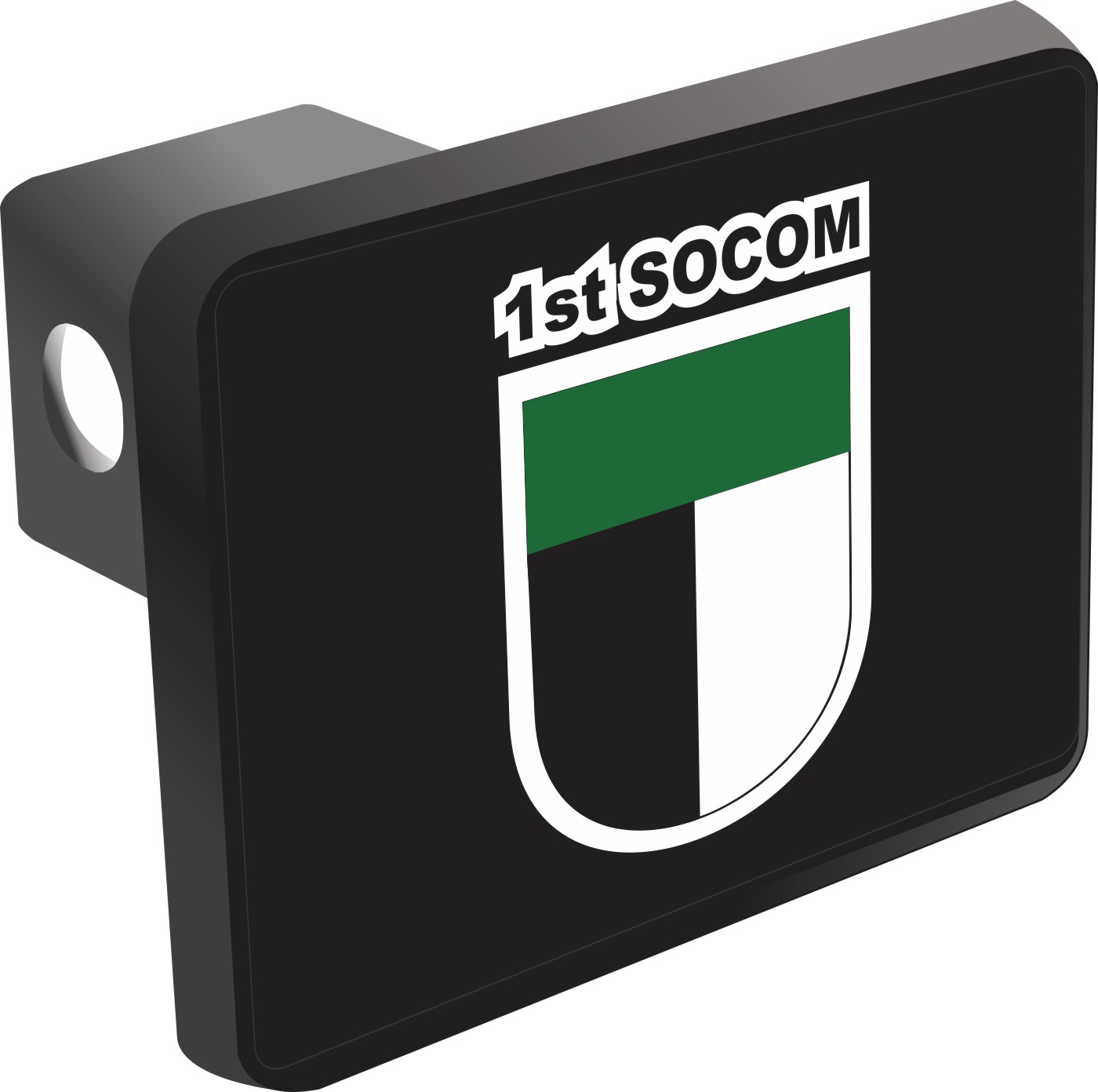 This 1st Special Operations Command SOCOM Hitch Cover is proudly Made in the USA. Each Hitch Cover's face plate measures 4.7" x 3.4" and is applied on a black heavy duty injection molded plastic 2" hitch cover; link pin not included. The face plate of the hitch cover is sublimation printed to provide a beautiful glossy finish sure to catch the eye. This hitch cover would make a wonderful addition to your truck or other vehicle.A percentage of the sale of each MilitaryBest item is forwarded to the licensing departments of each respective branch of service in support of the MWR (Morale, Welfare, & Recreation) program. These payments are made by either ALL4U LLC or the wholesaler from where the item originated. Our team thanks you for your service and your support of these programs.