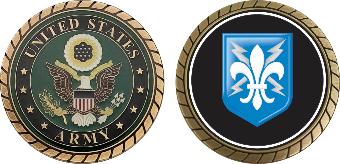 This 1 3/4” 205th Military Intelligence Brigade Patch Challenge Coin is proudly offered by Militarybest. This Officially Licensed Army coin has beautiful enamel finish on one side and an organized crisp clean design on the opposite side.