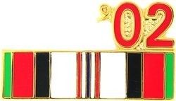 Click on Pin to enlarge the image.This MilitaryBest 2002 Afghanistan War Campaign Ribbon pin is a 7/8" hand enameled, gold plated, cloisonne pin and is the same pin that is sold in Military Base Exchanges around the world. This pin may be used as a hat pin or lapel pin and will look great on your Military Veterans Ballcap or Veterans Service Cap. This pin would be a great gift idea and a wonderful addition to your pin collection.