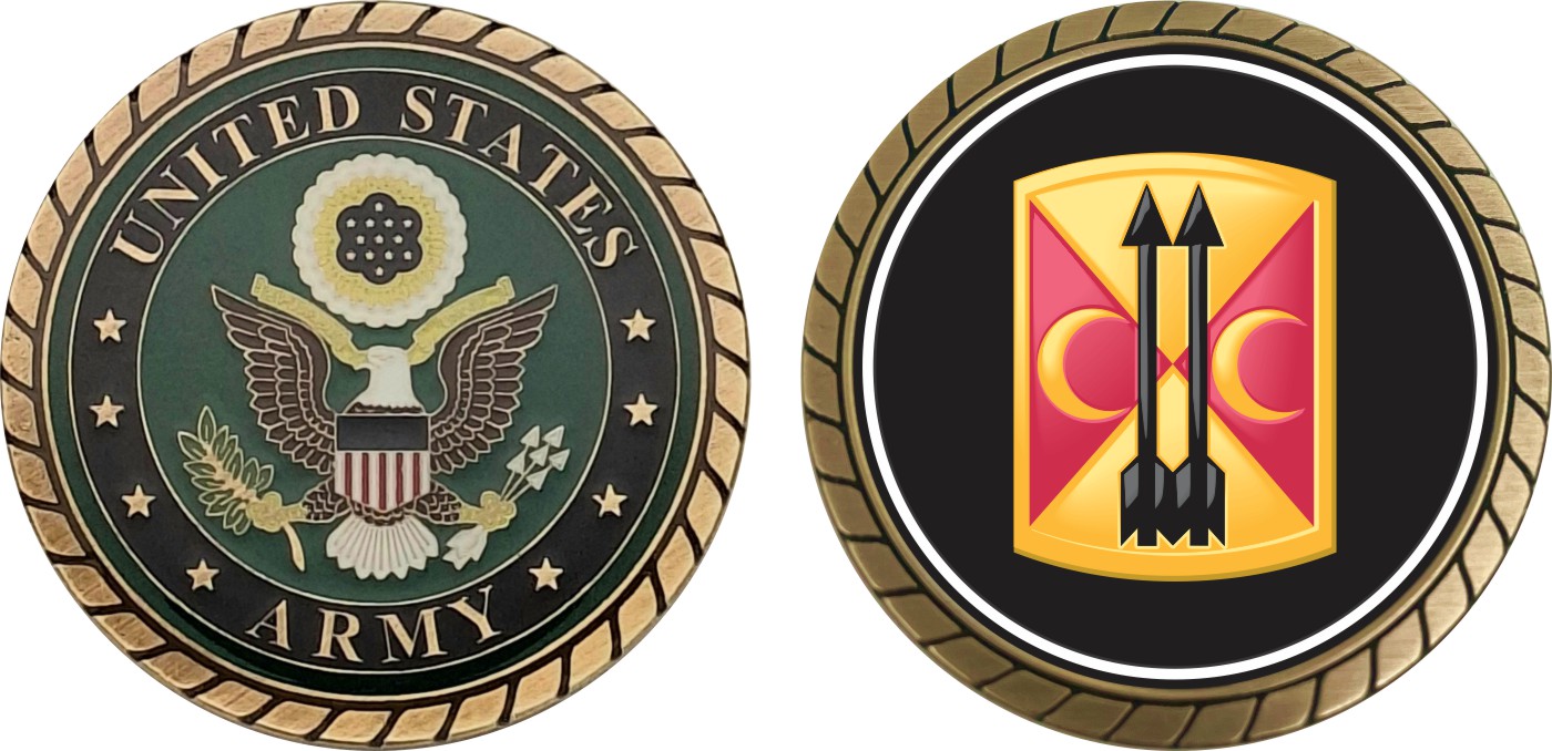 This 1 3/4” 212th Field Artillery Brigade Patch Challenge Coin is proudly offered by Militarybest. This Officially Licensed Army coin has beautiful enamel finish on one side and an organized crisp clean design on the opposite side.