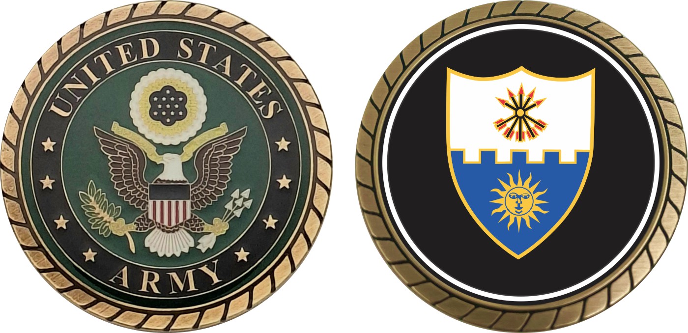 This 1 3/4” 22nd Infantry Unit Crest Challenge Coin is proudly offered by Militarybest. This Officially Licensed Army coin has beautiful enamel finish on one side and an organized crisp clean design on the opposite side.