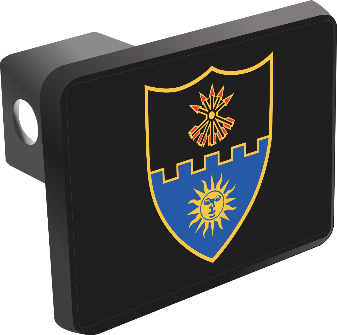 This 22nd Infantry Unit Crest Hitch Cover is proudly Made in the USA. Each Hitch Cover's face plate measures 4.7" x 3.4" and is applied on a black heavy duty injection molded plastic 2" hitch cover; link pin not included. The face plate of the hitch cover is sublimation printed to provide a beautiful glossy finish sure to catch the eye. This hitch cover would make a wonderful addition to your truck or other vehicle.A percentage of the sale of each MilitaryBest item is forwarded to the licensing departments of each respective branch of service in support of the MWR (Morale, Welfare, & Recreation) program. These payments are made by either ALL4U LLC or the wholesaler from where the item originated. Our team thanks you for your service and your support of these programs.