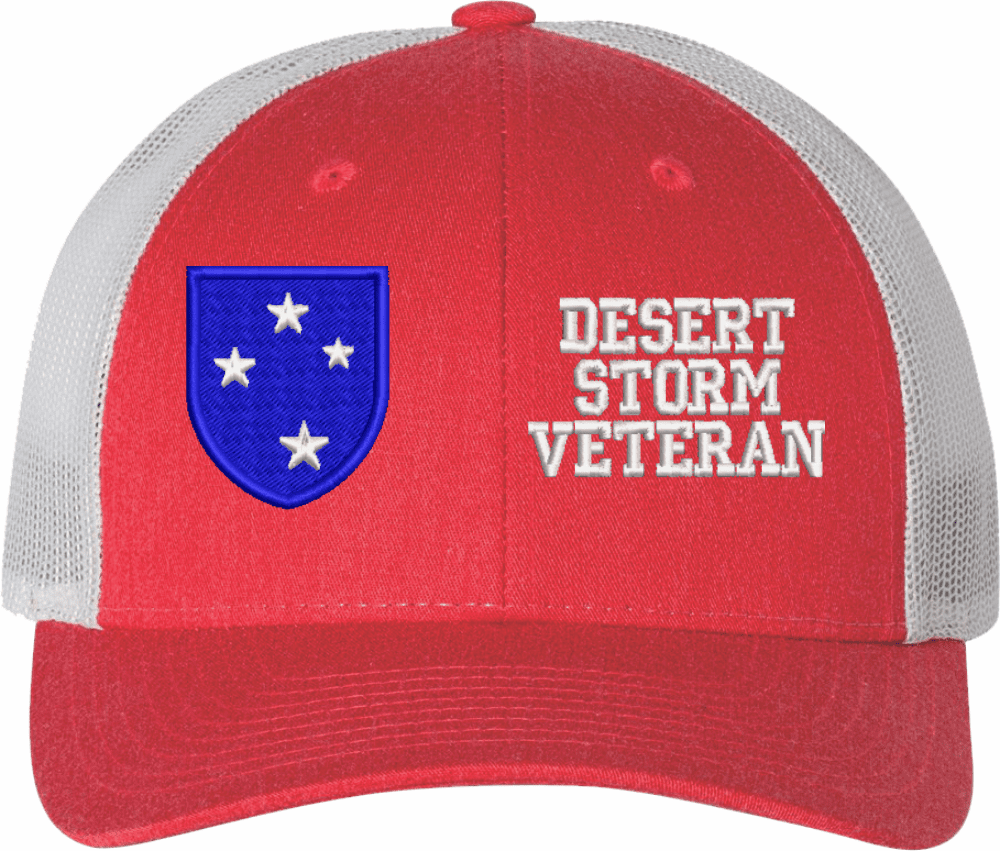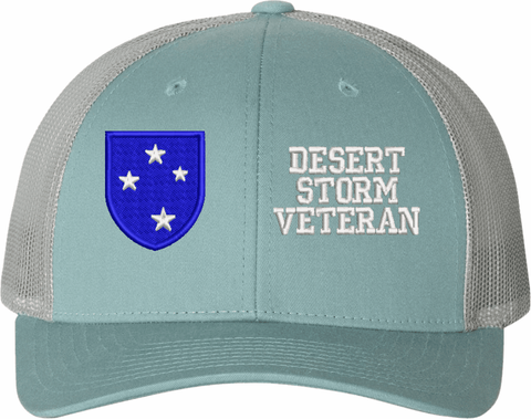MilitaryBest is proud to offer this Mesh Back U.S. Army 23rd Infantry Division Desert Storm Veteran Women's Split-Cap. The design is embroidered onto a 6x panel mid/low profile mesh back cap and is crisp, clean, and sure to be loved by all! As with all MilitaryBest caps and apparel your satisfaction is guaranteed!Caps ordered with embroidered back text requires an additional 1 to 2 days of production time. All personalized caps will be embroidered in ALL CAPITAL LETTERS. Caps personalized with back text are not returnable unless there is a material defect in the cap.