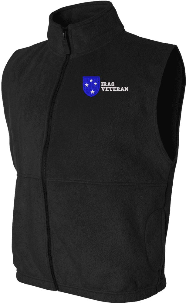 Due to supply chain disruptions, some colors and sizes may not be available in the same Brand, in these cases a brand of comparable quality will be used. Feel free to call in advance of your order, with questions you may have.MilitaryBest is proud to offer this quality 23rd Infantry Division Iraq Veteran Full-Zip Fleece Vest. Our U.S. Army Full Zip Fleece Vest features a convertible collar with dyed-to-match zipper pull and oversized nylon reinforced slash pockets. These Military Vests are proudly embroidered at our facilities in Scottsboro, AL.