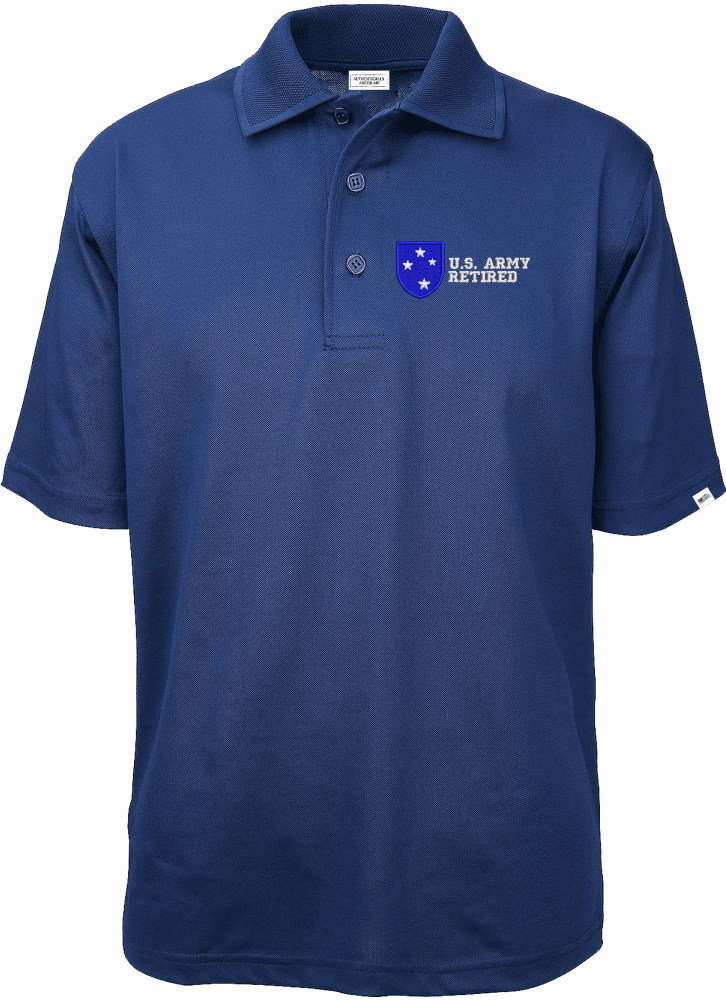 MilitaryBest proudly offers a top-quality 23rd Infantry Division Retired Authentically American Mens Moisture Wicking Polo made in the USA by Authentically American whom we have proudly partnered with.- Proudly Made and Embroidered in the USA.