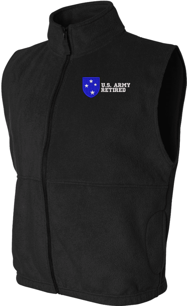 Due to supply chain disruptions, some colors and sizes may not be available in the same Brand, in these cases a brand of comparable quality will be used. Feel free to call in advance of your order, with questions you may have.MilitaryBest is proud to offer this quality 23rd Infantry Division Retired Full-Zip Fleece Vest. Our U.S. Army Full Zip Fleece Vest features a convertible collar with dyed-to-match zipper pull and oversized nylon reinforced slash pockets. These Military Vests are proudly embroidered at our facilities in Scottsboro, AL.