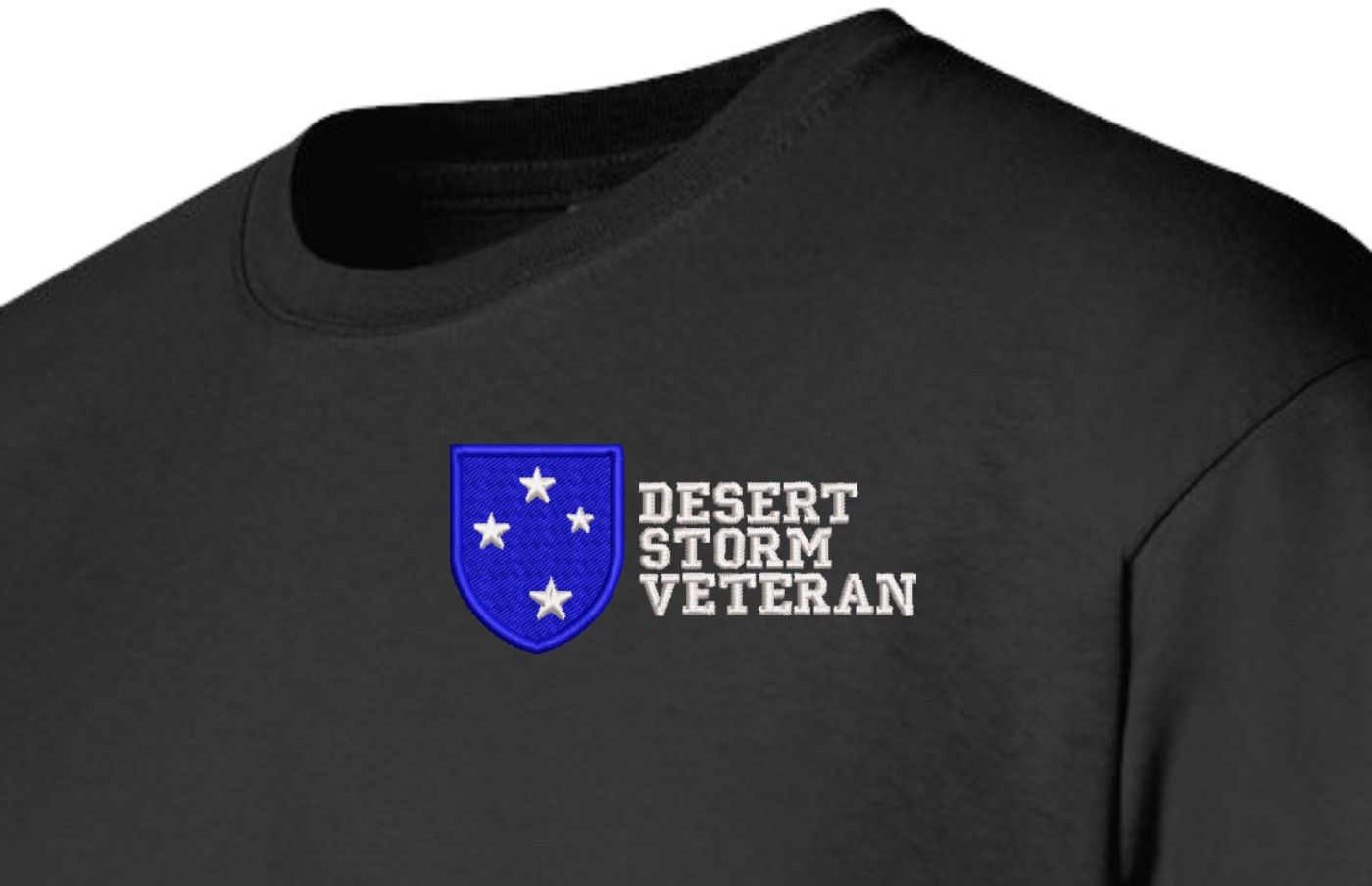 Note: Some of the Color Options pictured may not be available. Available Color Options are listed on the drop down menu above.MilitaryBest is proud to offer this quality 23rd Infantry Division Desert Storm Veteran T Shirt. This Gildan brand short sleeve t-shirt is made using a 6 oz pre-shrunk 100% cotton material. These quality Military T Shirts are proudly embroidered at our facilities in Scottsboro, AL. Support the Army MWR program by purchasing only from Licensed Vendors.