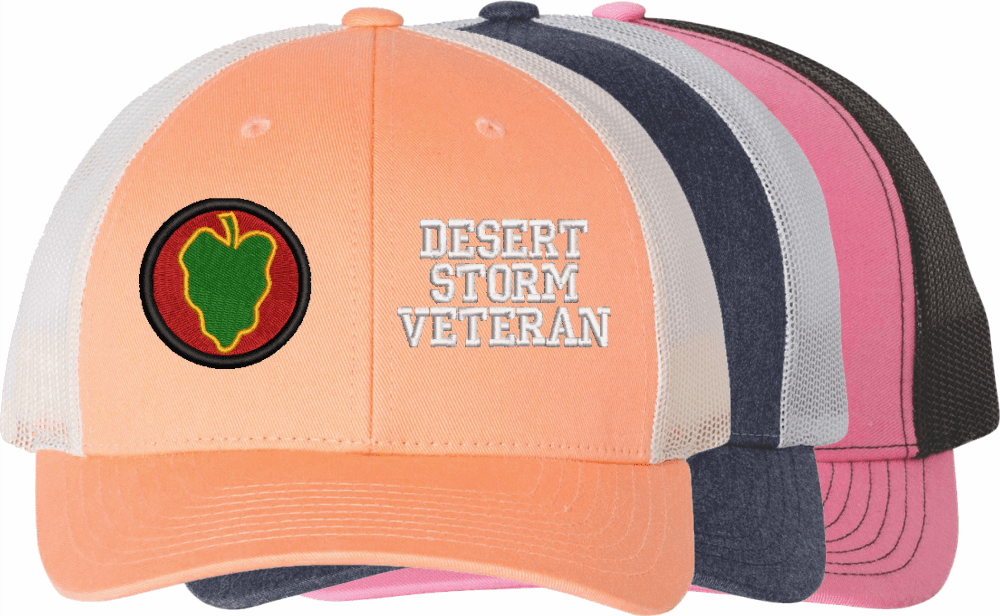 MilitaryBest is proud to offer this Mesh Back U.S. Army 24th Infantry Division Desert Storm Veteran Women's Split-Cap. The design is embroidered onto a 6x panel mid/low profile mesh back cap and is crisp, clean, and sure to be loved by all! As with all MilitaryBest caps and apparel your satisfaction is guaranteed!Caps ordered with embroidered back text requires an additional 1 to 2 days of production time. All personalized caps will be embroidered in ALL CAPITAL LETTERS. Caps personalized with back text are not returnable unless there is a material defect in the cap.
