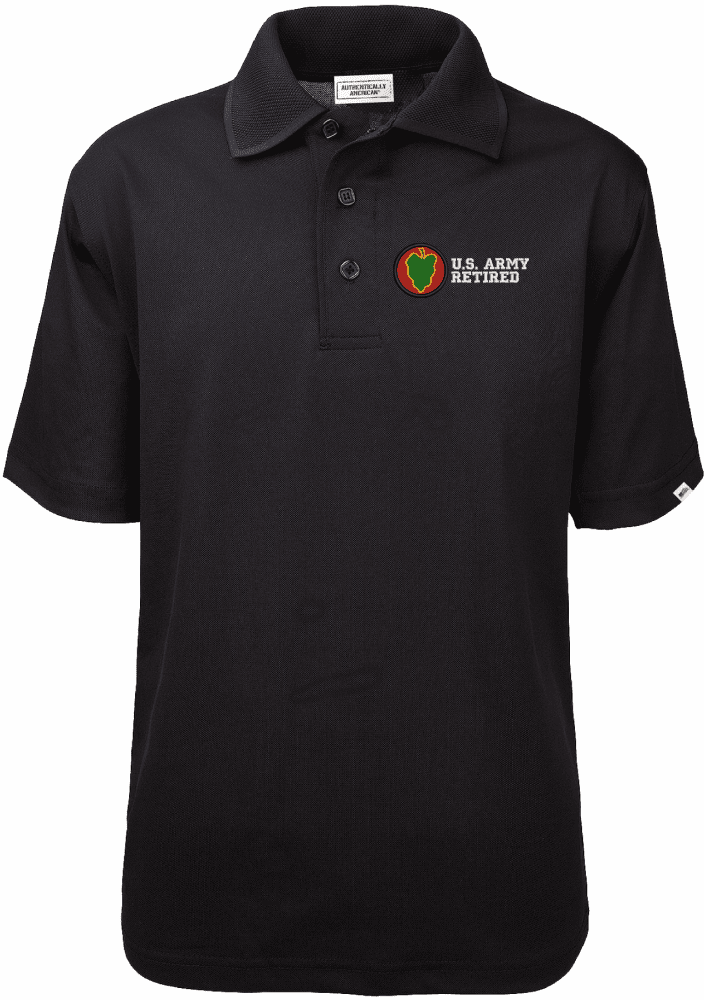 MilitaryBest proudly offers a top-quality 24th Infantry Division Retired Authentically American Mens Moisture Wicking Polo made in the USA by Authentically American whom we have proudly partnered with.- Proudly Made and Embroidered in the USA.