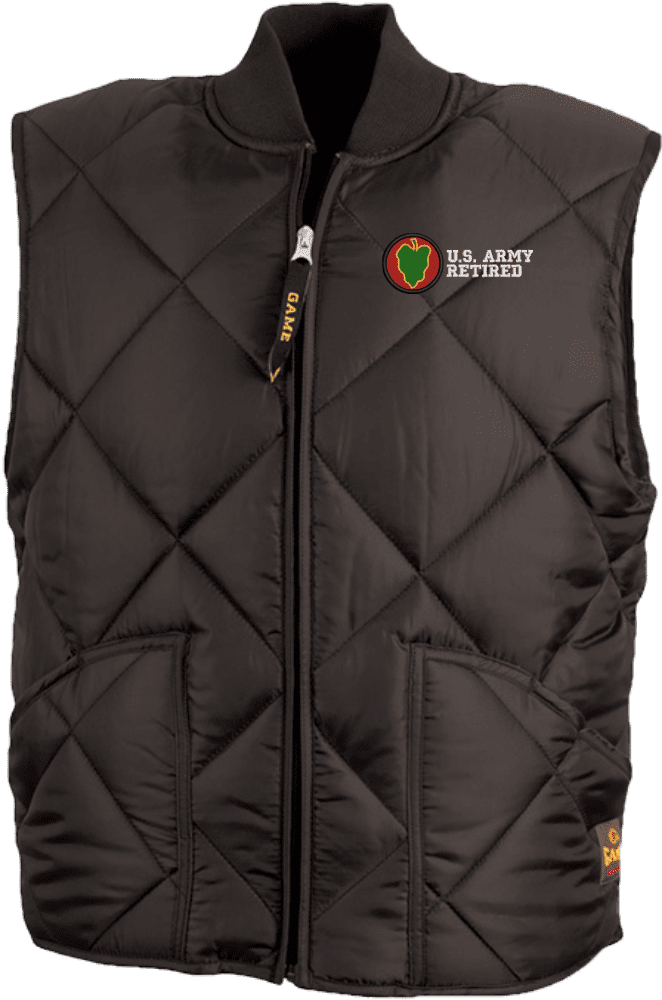 MilitaryBest is proud to offer this quality 24th Infantry Division Retired Game Sportswear Finest Vest. Our U.S. Army Vests feature, wind-resistant nylon taffeta shell, 5oz poly-fill lining with thermal knit backing, full front zipper, 2 outer pockets, and are machine washable. These Military Sportswear Vests are proudly embroidered at our facilities in Scottsboro, AL.