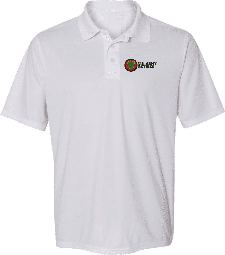 MilitaryBest is proud to offer this quality 24th Infantry Division Retired Polo. This Polo is made using 50/50 cotton/polyester moisture wicking material.These quality Military Polos are proudly embroidered at our facilities in Scottsboro, AL. Support the Army MWR program by purchasing only from Licensed Vendors.