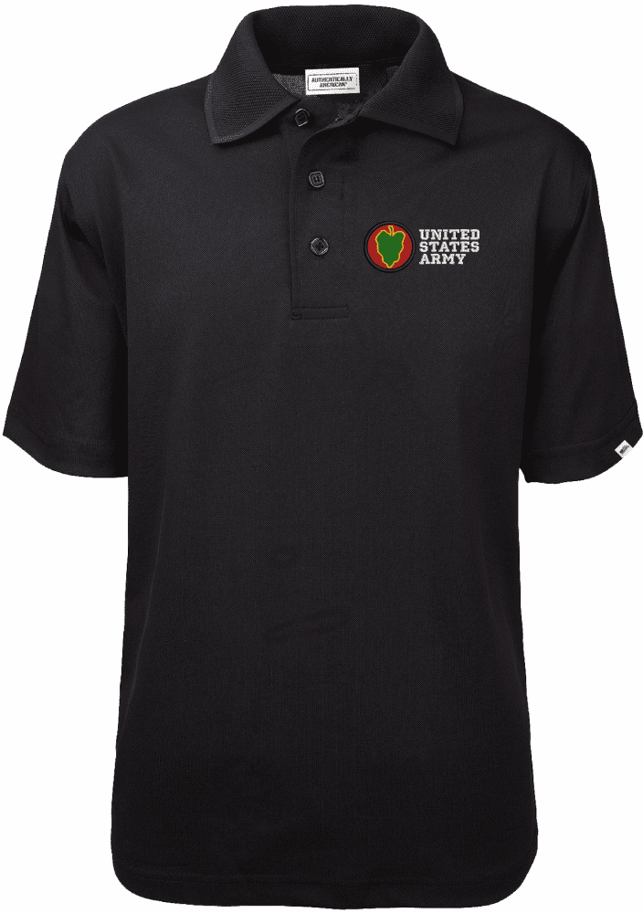 MilitaryBest proudly offers a top-quality 24th Infantry Division United States Army Authentically American Mens Moisture Wicking Polo made in the USA by Authentically American whom we have proudly partnered with.- Proudly Made and Embroidered in the USA.