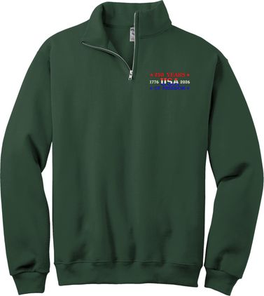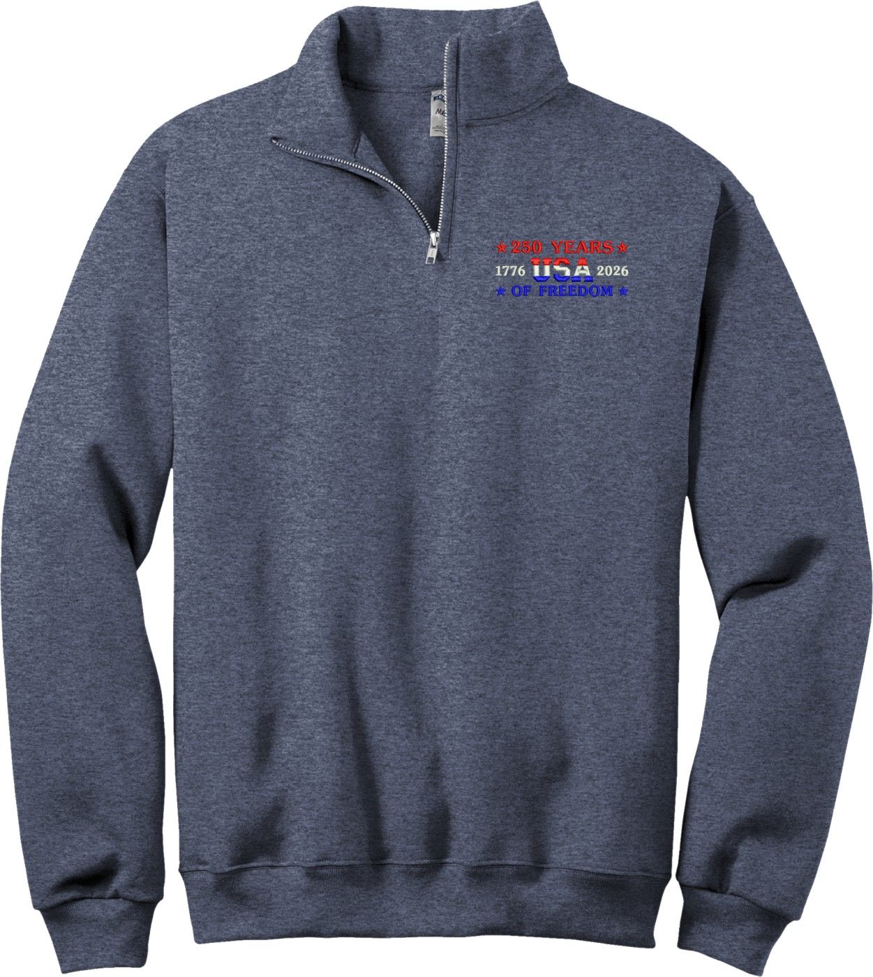 *** The brand of shirt will vary, and may not match the brand pictured above. ***MilitaryBest is proud to offer this 250 Years of Freedom Embroidered Quarter-Zip Pullover. This quality pullover is embroidered by our MilitaryBest team in Northeast Alabama.
