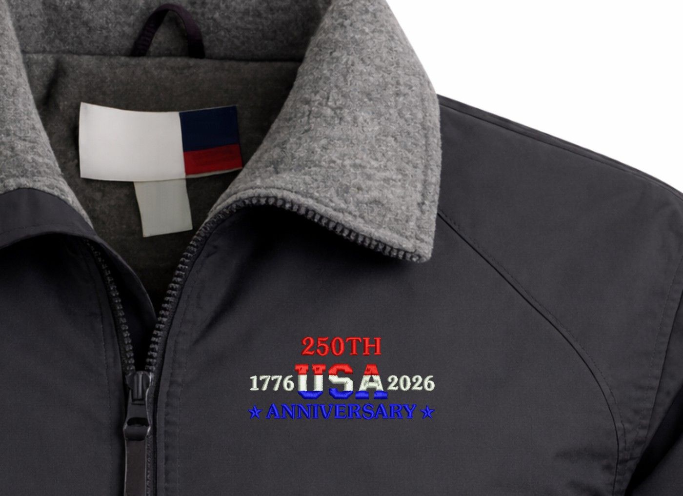 *** The brand of Jacket will vary, and may not match the brand pictured above. ***MilitaryBest is proud to offer this quality 250th USA Anniversary Embroidered Jacket. Each 3 season jacket is made from a 3-Layer system consisting of a nylon shell, an insulator layer, Nylon-lined sleeves, and an inside layer of fleece for comfort. Each jacket’s features include a sturdy black enamel front-zipper, raglan sleeves, outsize zip pockets, an inside zip security pocket, YKK zippers, and a banded-bottom. As with all MilitaryBest products, your satisfaction is guaranteed! This jacket can be worn in fall, winter, and spring and is proudly custom embroidered at our facilities in Scottsboro, AL.
