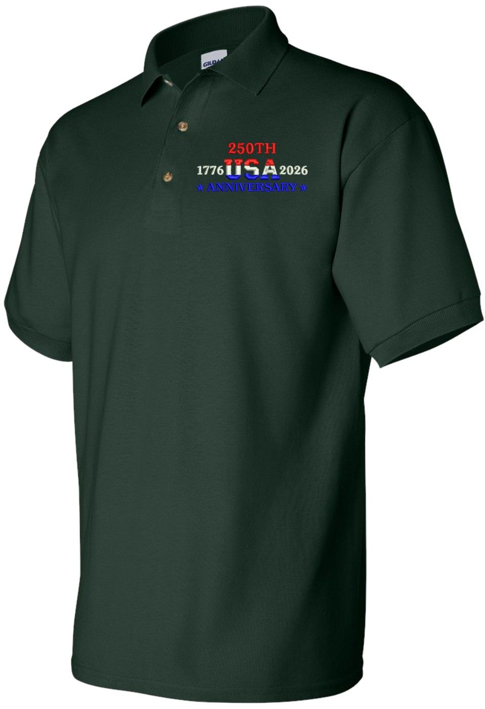 *** The brand of shirt will vary, and may not match the brand pictured above. ***MilitaryBest is proud to offer this quality 250th USA Anniversary Embroidered Polo. Each Polo is available in either 100% Ringspun cotton pique or a 50/50 cotton/polyester blend. These quality Military Polos are proudly embroidered at our facilities in Scottsboro, AL. Support the Army MWR program by purchasing only from Licensed Vendors.