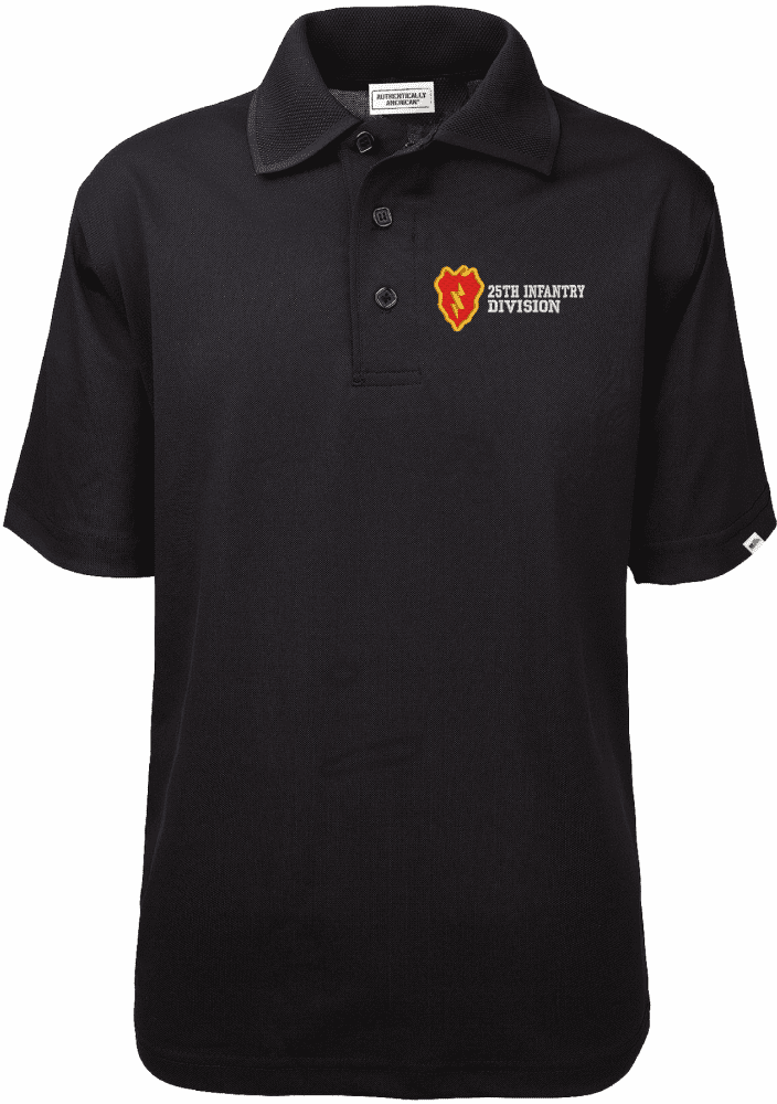 MilitaryBest proudly offers a top-quality 25th Infantry Division Authentically American Mens Moisture Wicking Polo made in the USA by Authentically American whom we have proudly partnered with.- Proudly Made and Embroidered in the USA.