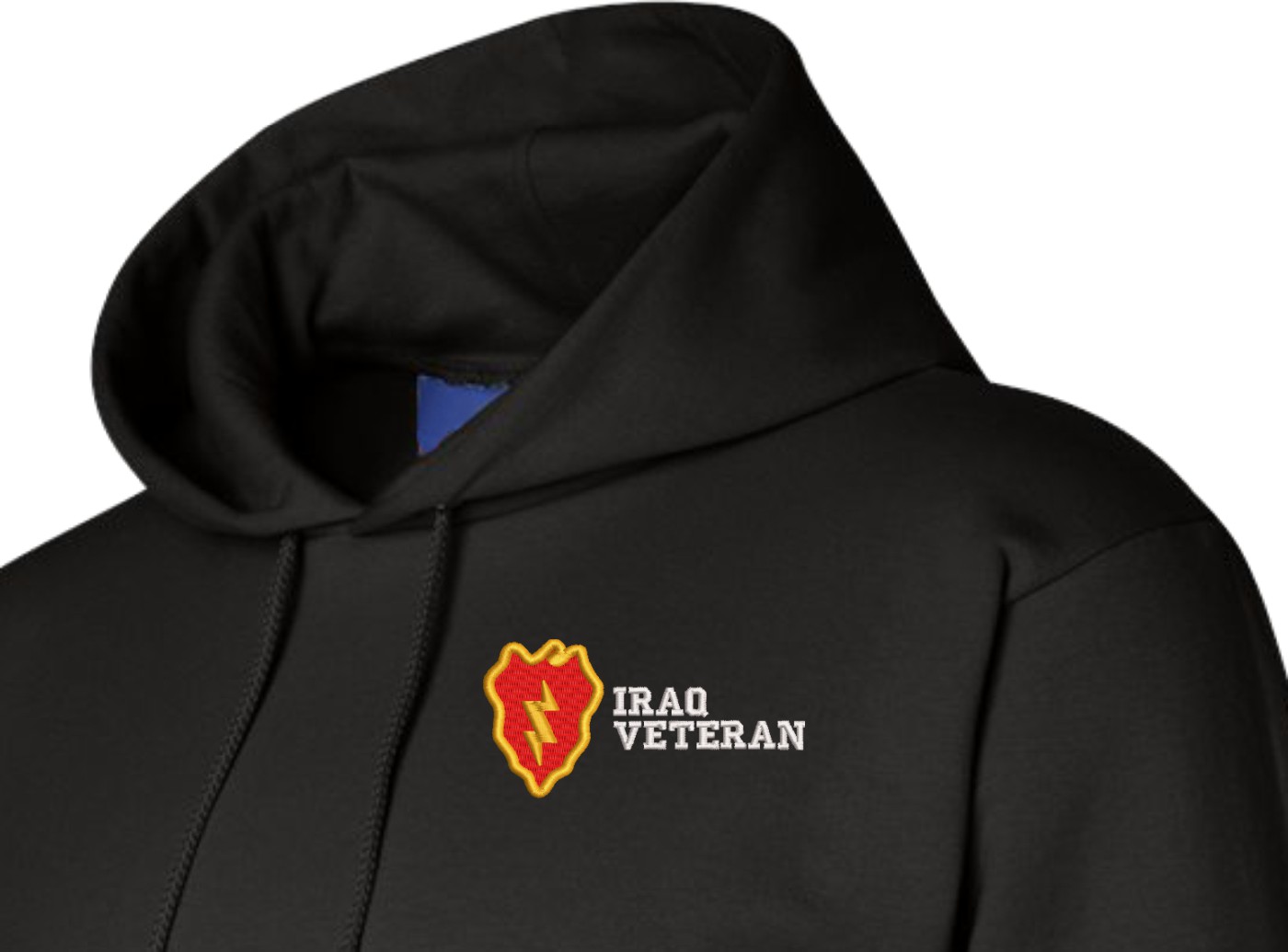 MilitaryBest is proud to offer this quality 25th Infantry Division Iraq Veteran Hoodie. Each U.S. Army Hoodie is direct embroidered onto either a Champion or Gildan brand Hoodie using a 9.5 oz 50/50 Cotton Poly blend material. These Military Hoodies are proudly embroidered at our facilities in Scottsboro, AL.