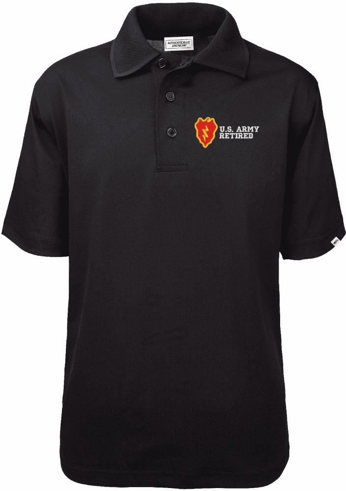 MilitaryBest proudly offers a top-quality 25th Infantry Division Retired Authentically American Mens Moisture Wicking Polo made in the USA by Authentically American whom we have proudly partnered with.- Proudly Made and Embroidered in the USA.