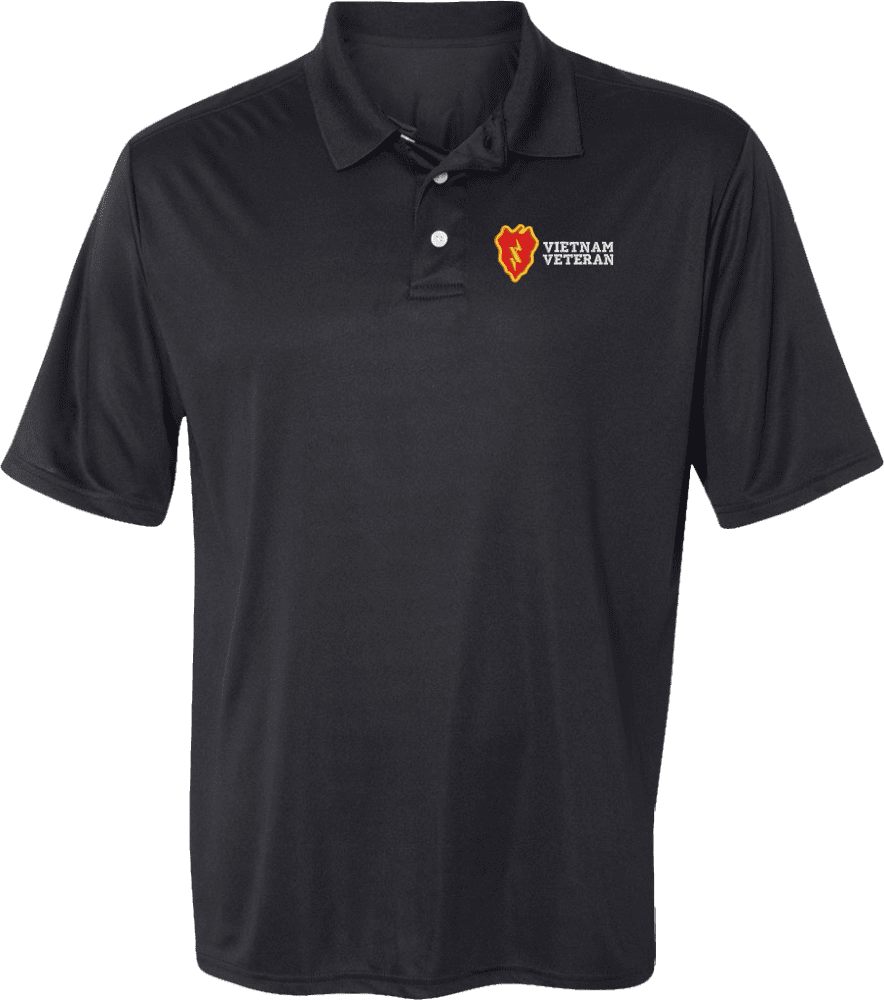 MilitaryBest is proud to offer this quality 25th Infantry Division Vietnam Veteran Polo. This Polo is made using 50/50 cotton/polyester moisture wicking material.These quality Military Polos are proudly embroidered at our facilities in Scottsboro, AL. Support the Army MWR program by purchasing only from Licensed Vendors.
