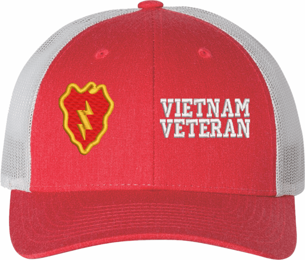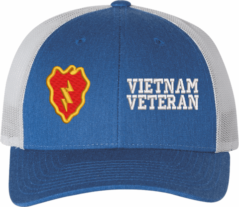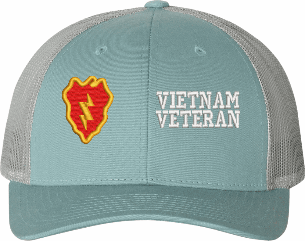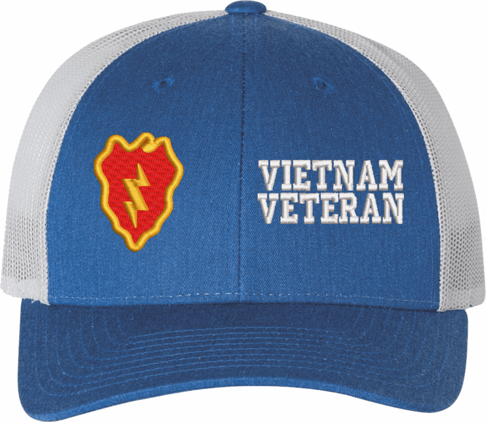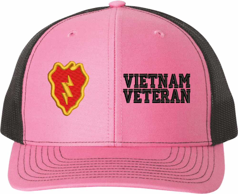 MilitaryBest is proud to offer this Mesh Back U.S. Army 25th Infantry Division Vietnam Veteran Women's Split-Cap. The design is embroidered onto a 6x panel mid/low profile mesh back cap and is crisp, clean, and sure to be loved by all! As with all MilitaryBest caps and apparel your satisfaction is guaranteed!Caps ordered with embroidered back text requires an additional 1 to 2 days of production time. All personalized caps will be embroidered in ALL CAPITAL LETTERS. Caps personalized with back text are not returnable unless there is a material defect in the cap.