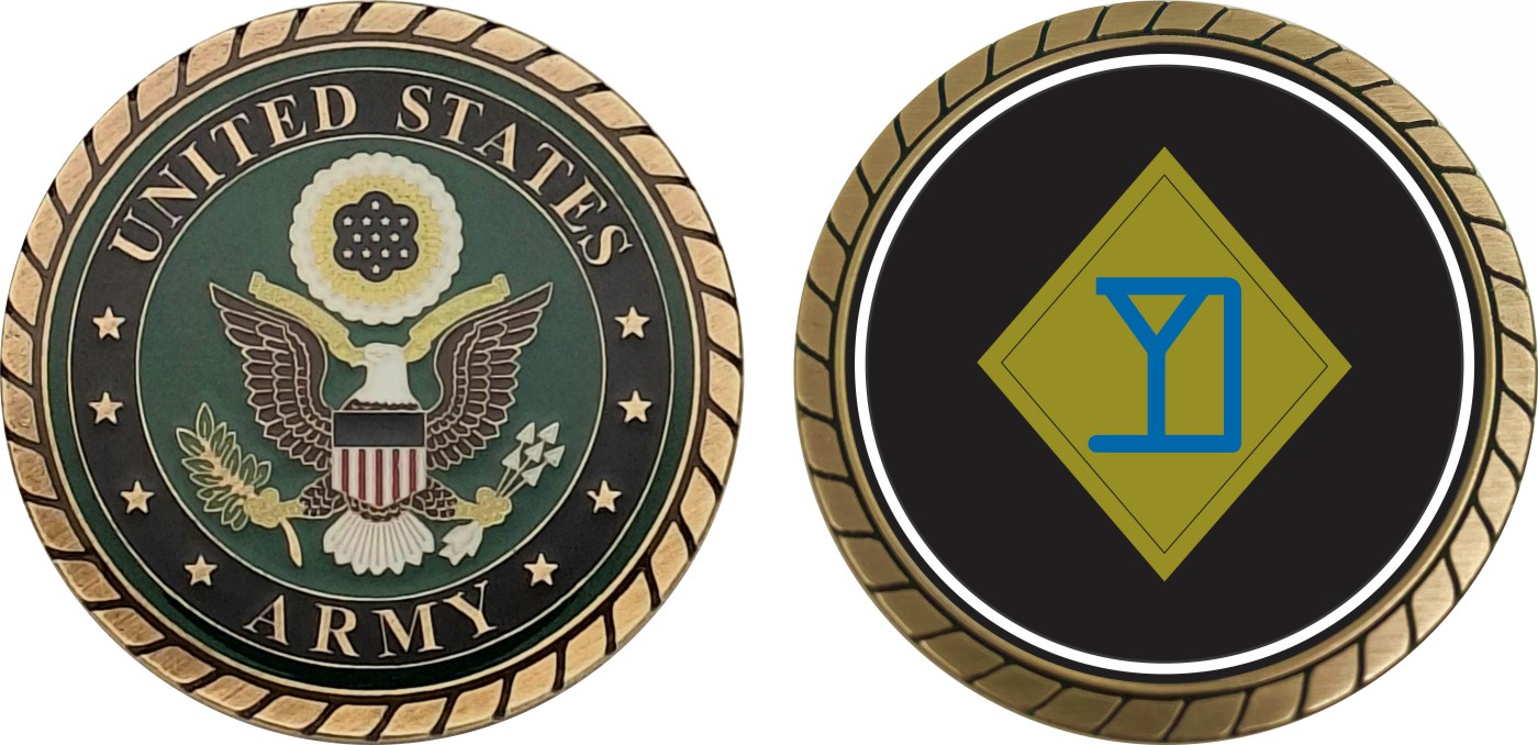 This 1 3/4” 26th Infantry Brigade Patch Challenge Coin is proudly offered by Militarybest. This Officially Licensed Army coin has beautiful enamel finish on one side and an organized crisp clean design on the opposite side.