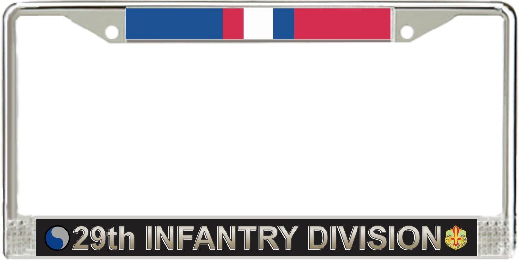 29th Infantry Division Kosovo Veteran Service Ribbon License Plate FrameThis U.S. Army 29th Infantry Division Kosovo Veteran License Plate Frame is made from the highest quality finished metal alloy. Each one is designed to provide years of use. Each is designed and produced in our facility in Scottsboro, Alabama.