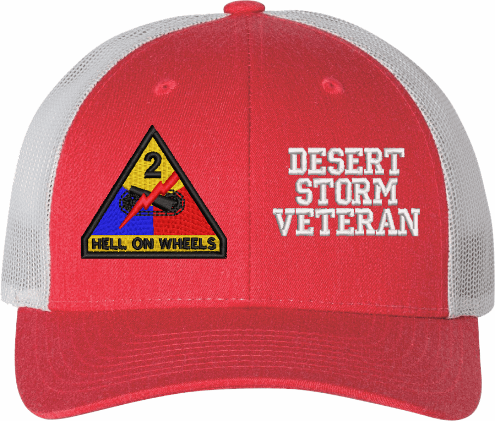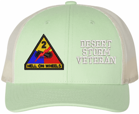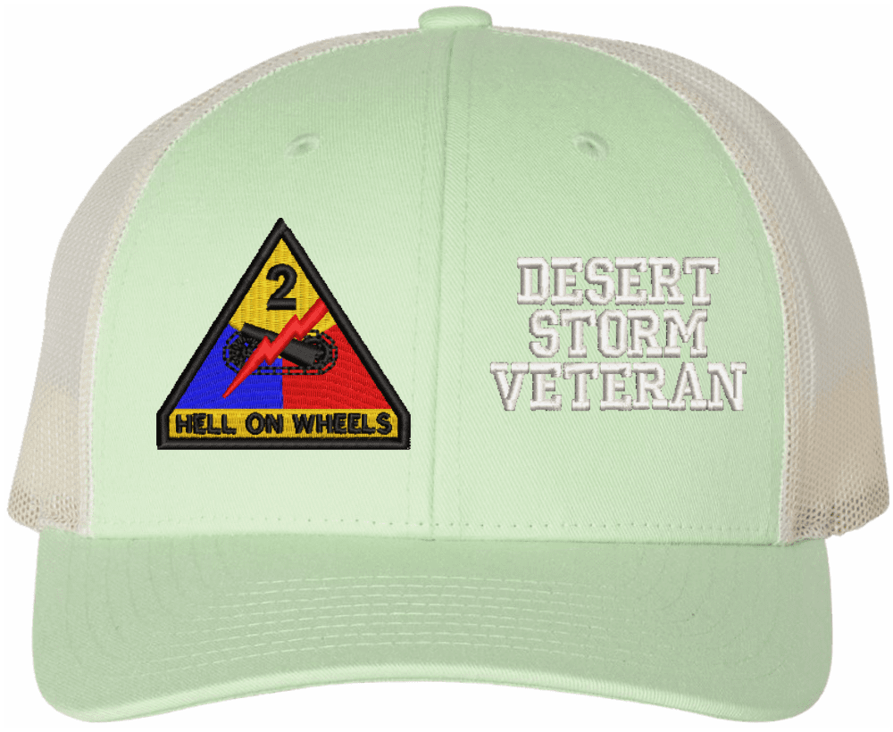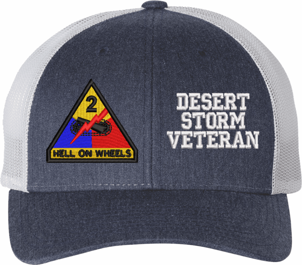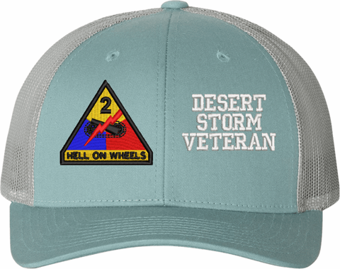 MilitaryBest is proud to offer this Mesh Back U.S. Army 2nd Armored Division Desert Storm Veteran Women's Split-Cap. The design is embroidered onto a 6x panel mid/low profile mesh back cap and is crisp, clean, and sure to be loved by all! As with all MilitaryBest caps and apparel your satisfaction is guaranteed!Caps ordered with embroidered back text requires an additional 1 to 2 days of production time. All personalized caps will be embroidered in ALL CAPITAL LETTERS. Caps personalized with back text are not returnable unless there is a material defect in the cap.