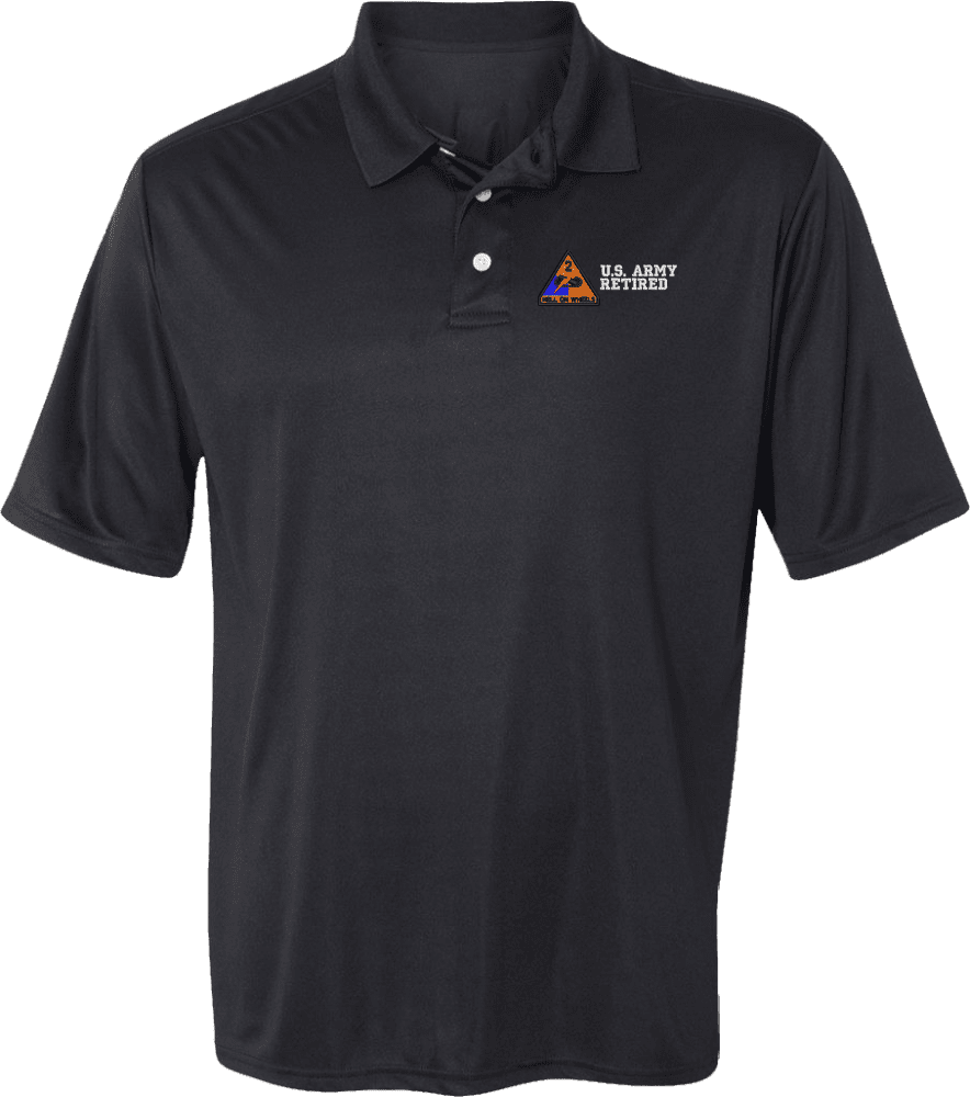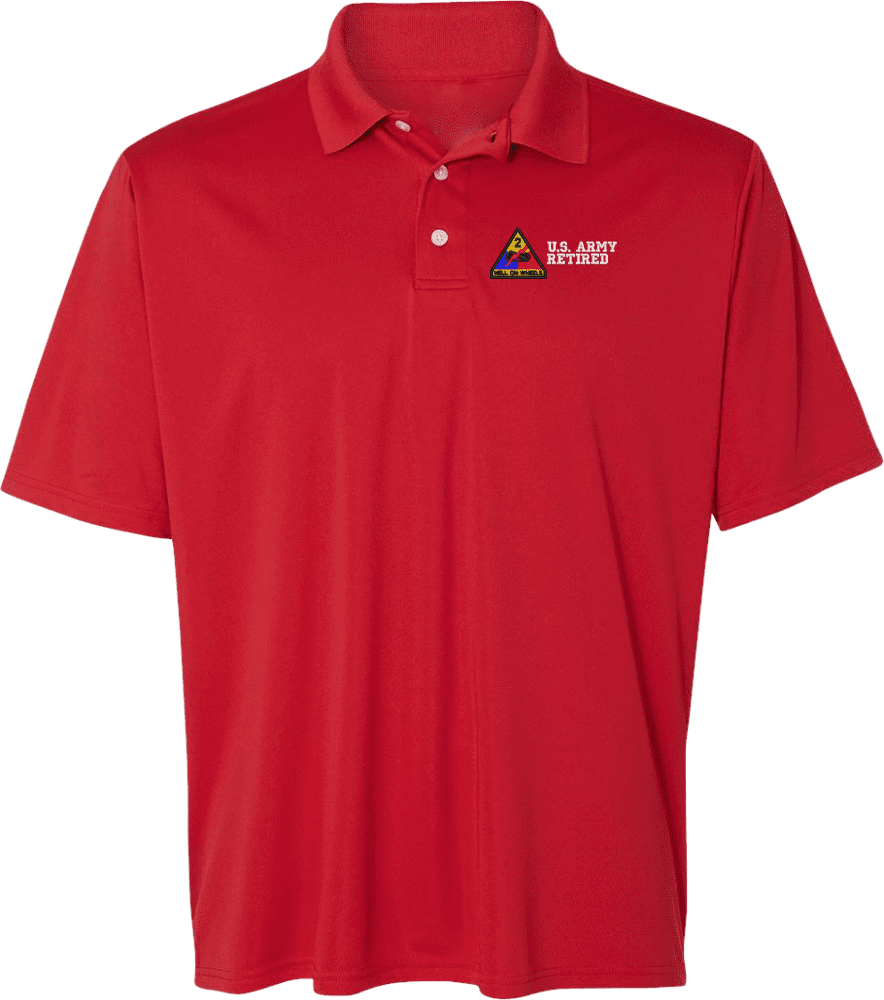 MilitaryBest is proud to offer this quality 2nd Armored Division Retired Polo. This Polo is made using 50/50 cotton/polyester moisture wicking material.These quality Military Polos are proudly embroidered at our facilities in Scottsboro, AL. Support the Army MWR program by purchasing only from Licensed Vendors.
