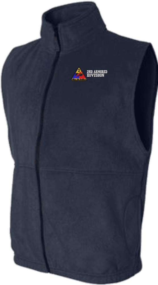 Due to supply chain disruptions, some colors and sizes may not be available in the same Brand, in these cases a brand of comparable quality will be used. Feel free to call in advance of your order, with questions you may have.MilitaryBest is proud to offer this quality 2nd Armored Division Full-Zip Fleece Vest. Our U.S. Army Full Zip Fleece Vest features a convertible collar with dyed-to-match zipper pull and oversized nylon reinforced slash pockets. These Military Vests are proudly embroidered at our facilities in Scottsboro, AL.