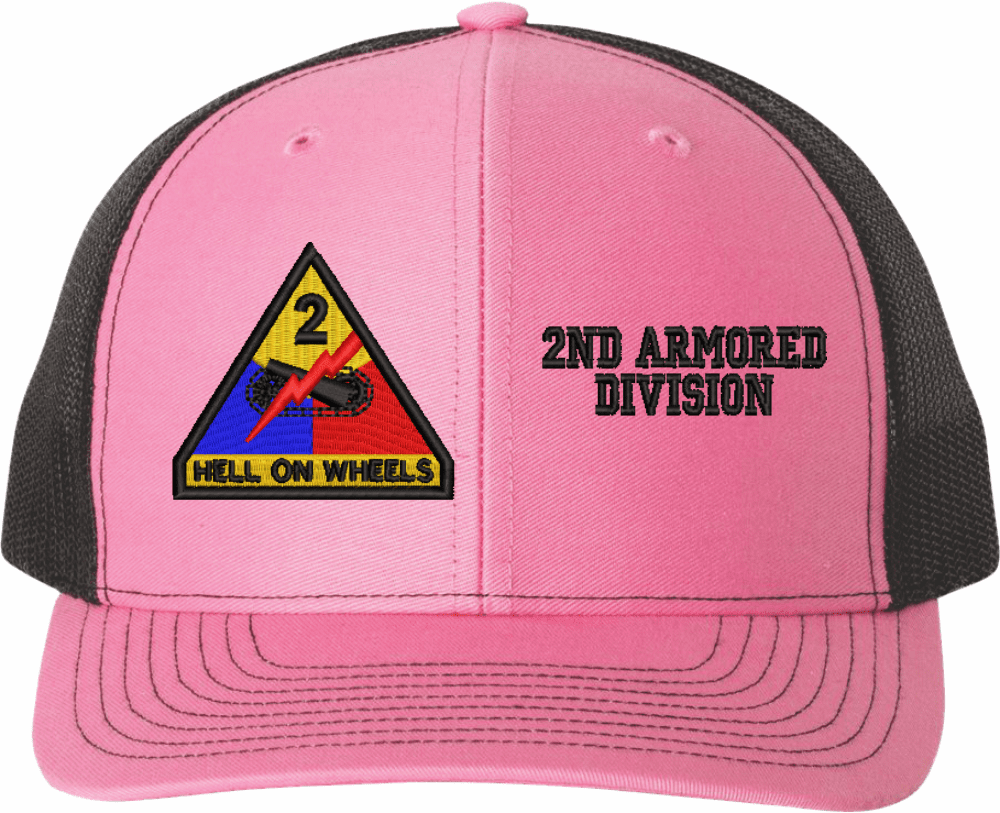 MilitaryBest is proud to offer this Mesh Back U.S. Army 2nd Armored Division Women's Split-Cap. The design is embroidered onto a 6x panel mid/low profile mesh back cap and is crisp, clean, and sure to be loved by all! As with all MilitaryBest caps and apparel your satisfaction is guaranteed!Caps ordered with embroidered back text requires an additional 1 to 2 days of production time. All personalized caps will be embroidered in ALL CAPITAL LETTERS. Caps personalized with back text are not returnable unless there is a material defect in the cap.