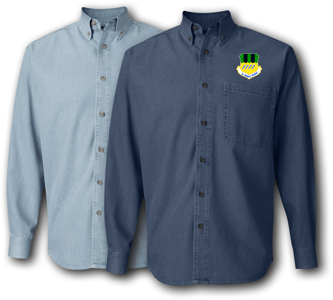 Militarybest is proud to offer this custom embroidered 2nd Bomb Wing Denim Shirt. Each Shirt is embroidered with high quality Rapos thread utilizing our in house "Happy Brand" Embroidering Machines.