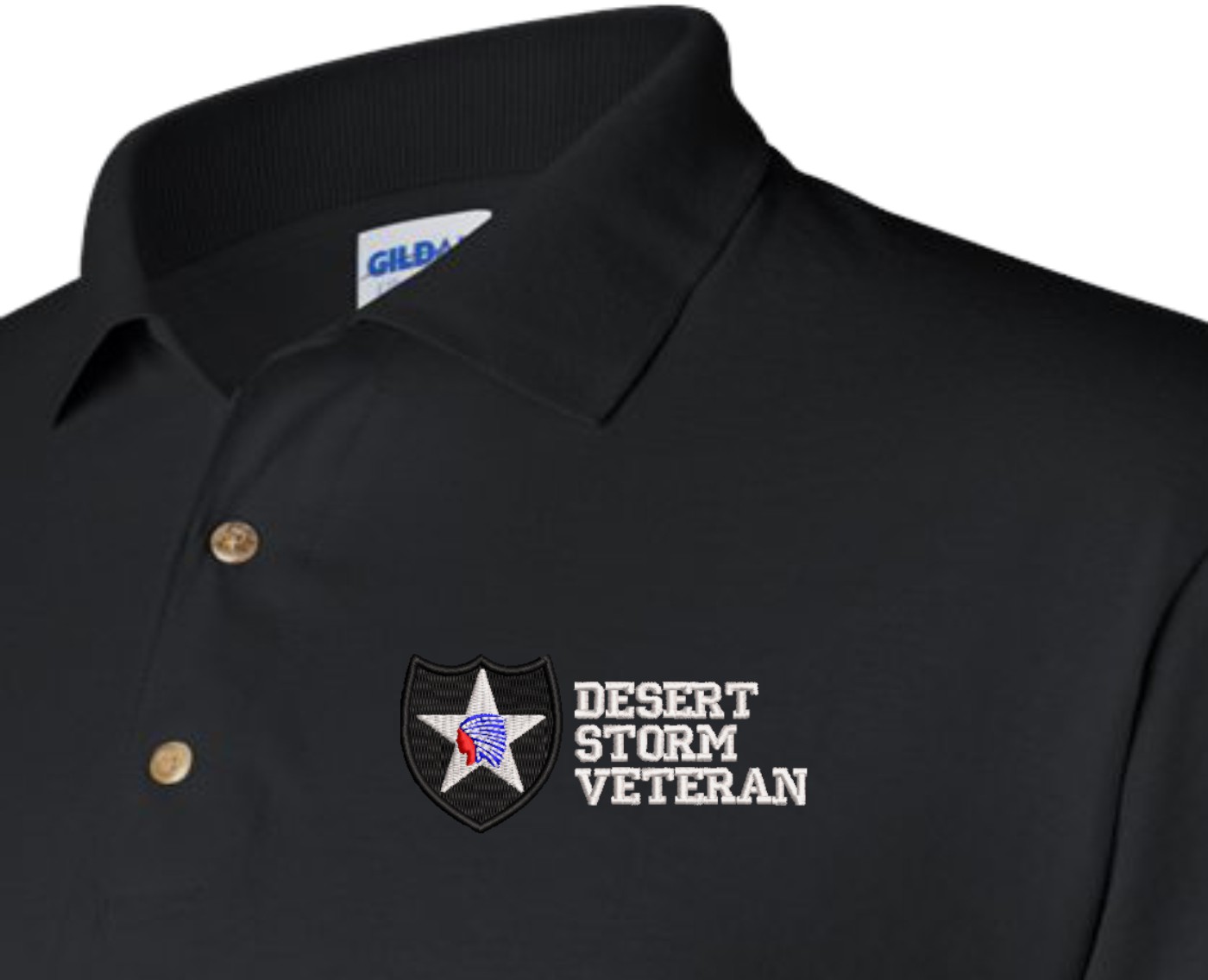 Note: Some of the Color Options pictured may not be available. Available Color Options are listed on the drop down menu above.MilitaryBest is proud to offer this quality 2nd Infantry Division Desert Storm Veteran Polo. Each Polo is available in either 100% Ringspun cotton pique or a 50/50 cotton/polyester blend. These quality Military Polos are proudly embroidered at our facilities in Scottsboro, AL. Support the Army MWR program by purchasing only from Licensed Vendors.