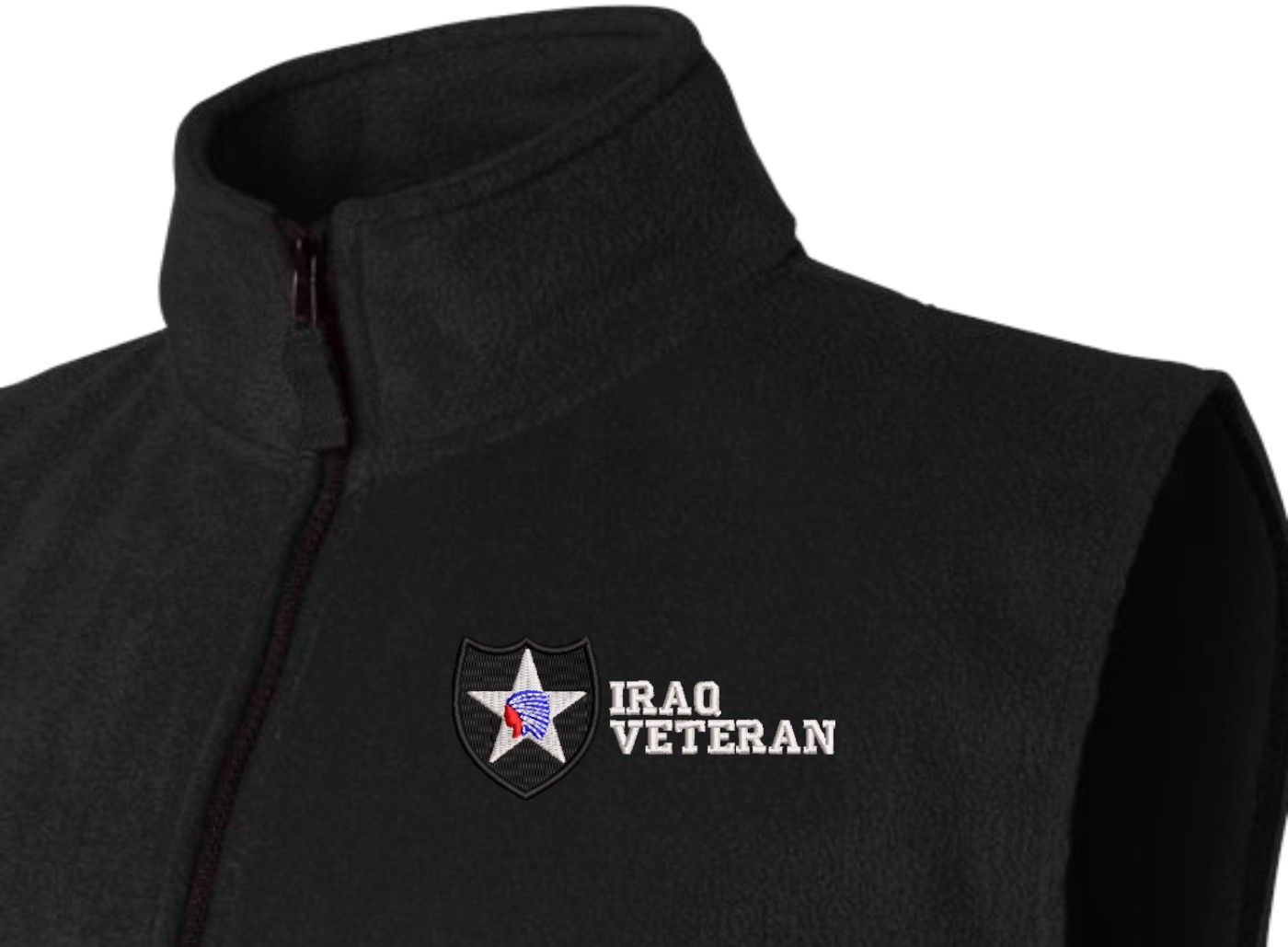 Due to supply chain disruptions, some colors and sizes may not be available in the same Brand, in these cases a brand of comparable quality will be used. Feel free to call in advance of your order, with questions you may have.MilitaryBest is proud to offer this quality 2nd Infantry Division Iraq Veteran Full-Zip Fleece Vest. Our U.S. Army Full Zip Fleece Vest features a convertible collar with dyed-to-match zipper pull and oversized nylon reinforced slash pockets. These Military Vests are proudly embroidered at our facilities in Scottsboro, AL.