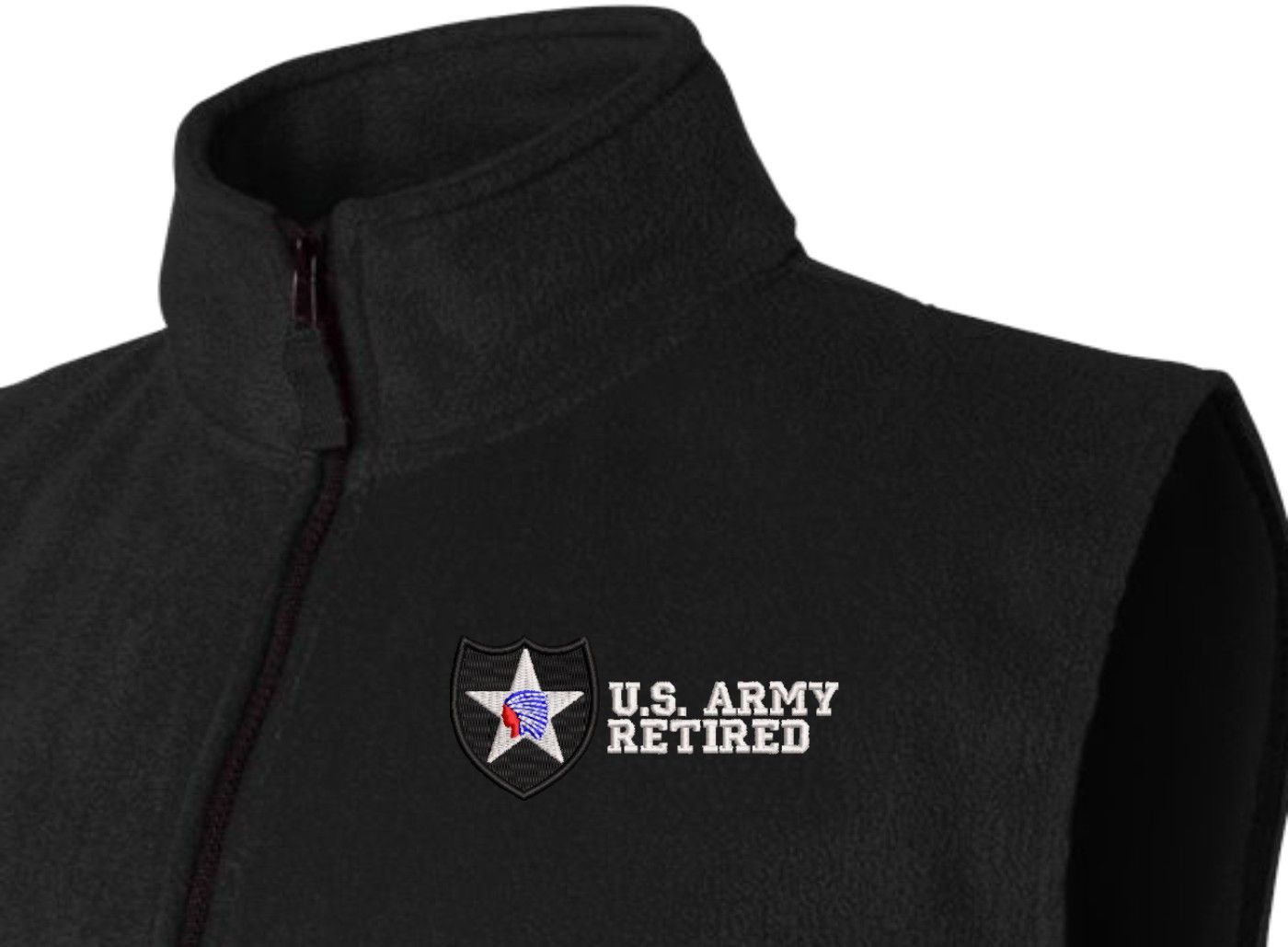 Due to supply chain disruptions, some colors and sizes may not be available in the same Brand, in these cases a brand of comparable quality will be used. Feel free to call in advance of your order, with questions you may have.MilitaryBest is proud to offer this quality 2nd Infantry Division Retired Full-Zip Fleece Vest. Our U.S. Army Full Zip Fleece Vest features a convertible collar with dyed-to-match zipper pull and oversized nylon reinforced slash pockets. These Military Vests are proudly embroidered at our facilities in Scottsboro, AL.