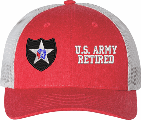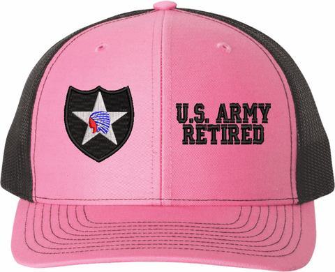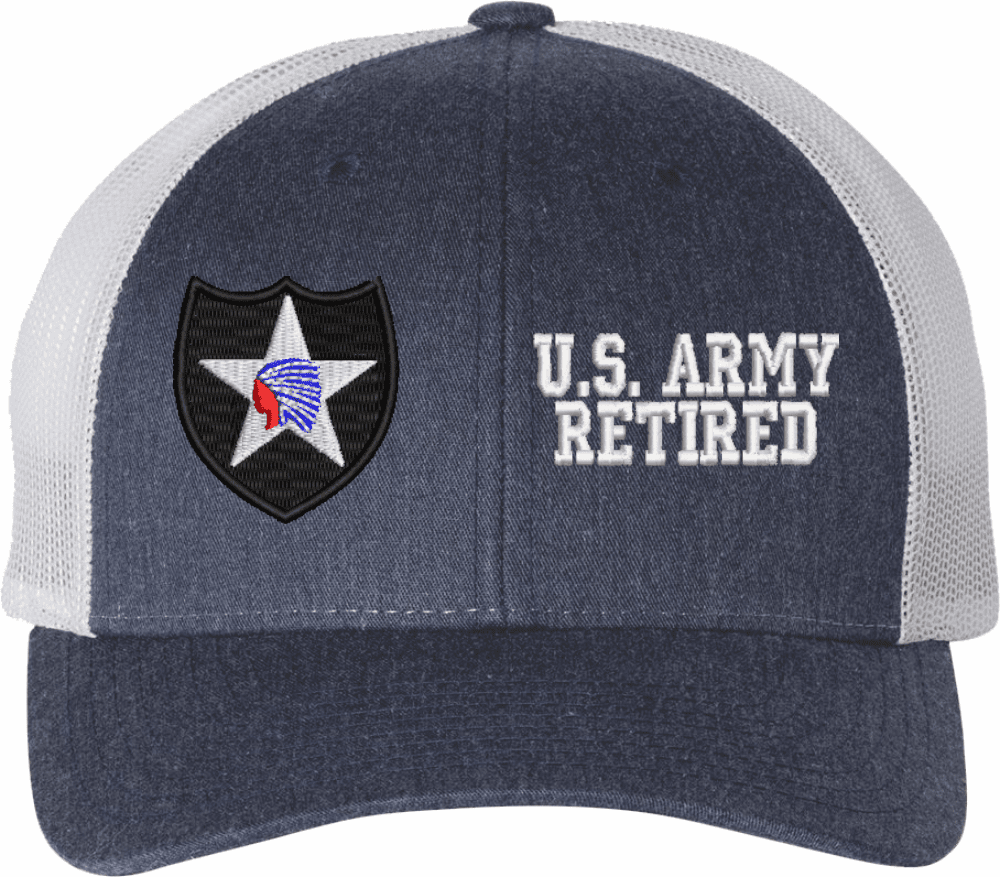 MilitaryBest is proud to offer this Mesh Back U.S. Army 2nd Infantry Division Retired Women's Split-Cap. The design is embroidered onto a 6x panel mid/low profile mesh back cap and is crisp, clean, and sure to be loved by all! As with all MilitaryBest caps and apparel your satisfaction is guaranteed!Caps ordered with embroidered back text requires an additional 1 to 2 days of production time. All personalized caps will be embroidered in ALL CAPITAL LETTERS. Caps personalized with back text are not returnable unless there is a material defect in the cap.