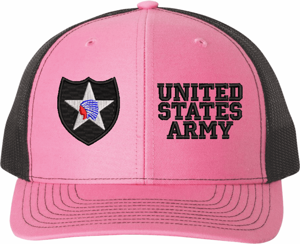 MilitaryBest is proud to offer this Mesh Back U.S. Army 2nd Infantry Division United States Army Women's Split-Cap. The design is embroidered onto a 6x panel mid/low profile mesh back cap and is crisp, clean, and sure to be loved by all! As with all MilitaryBest caps and apparel your satisfaction is guaranteed!Caps ordered with embroidered back text requires an additional 1 to 2 days of production time. All personalized caps will be embroidered in ALL CAPITAL LETTERS. Caps personalized with back text are not returnable unless there is a material defect in the cap.