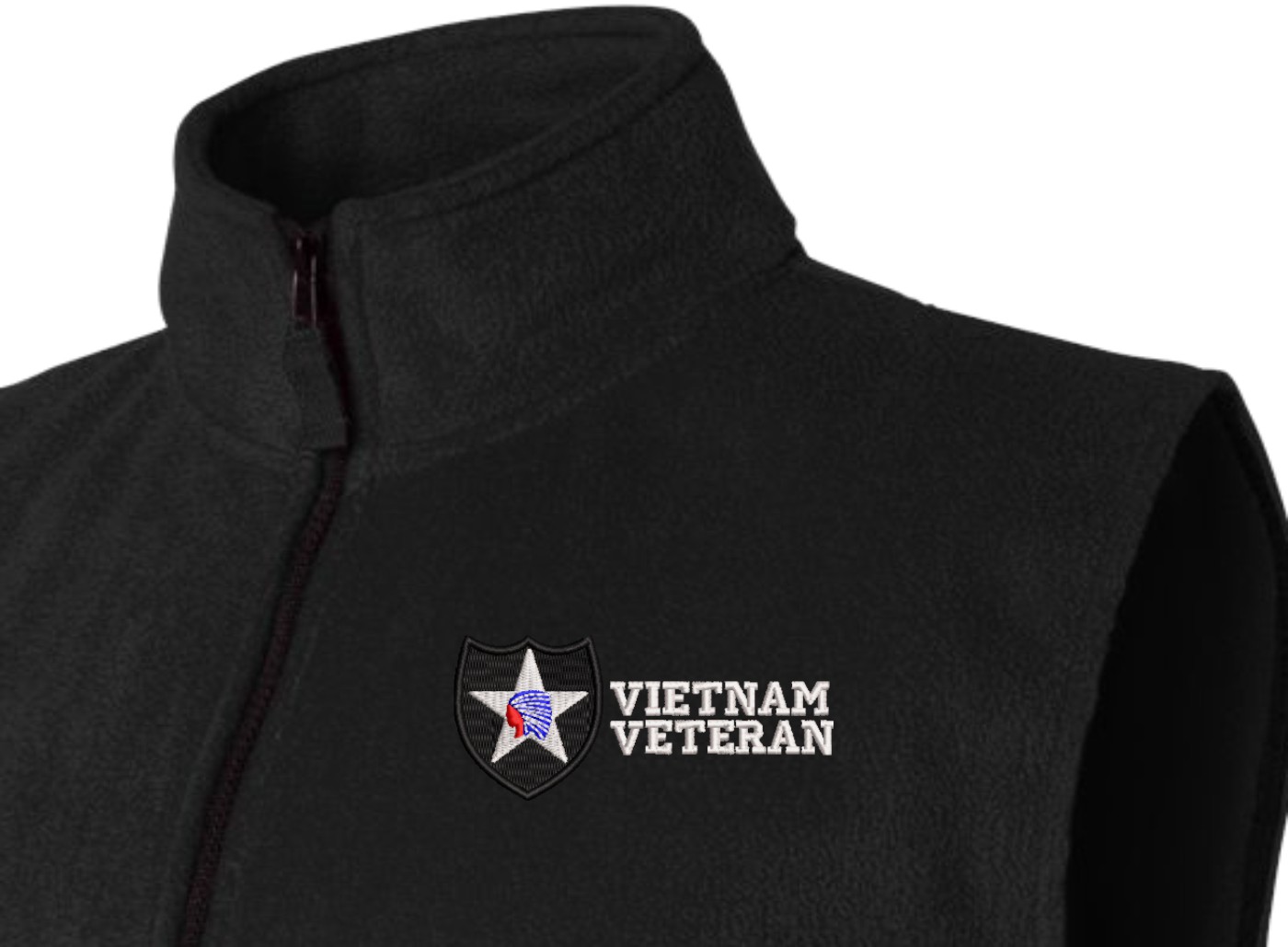 Due to supply chain disruptions, some colors and sizes may not be available in the same Brand, in these cases a brand of comparable quality will be used. Feel free to call in advance of your order, with questions you may have.MilitaryBest is proud to offer this quality 2nd Infantry Division Vietnam Veteran Full-Zip Fleece Vest. Our U.S. Army Full Zip Fleece Vest features a convertible collar with dyed-to-match zipper pull and oversized nylon reinforced slash pockets. These Military Vests are proudly embroidered at our facilities in Scottsboro, AL.