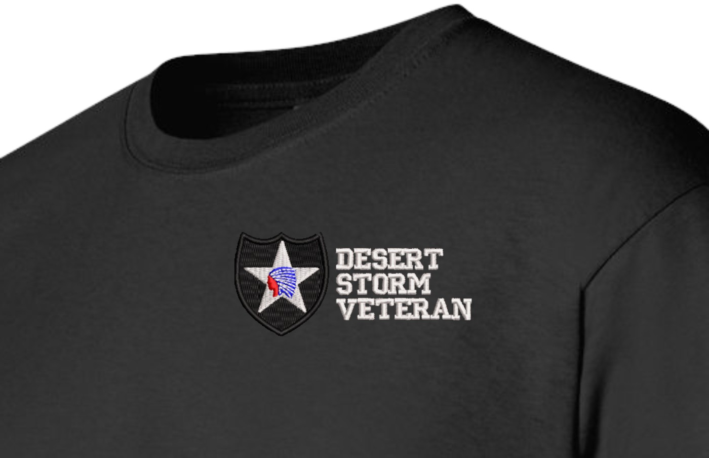 Note: Some of the Color Options pictured may not be available. Available Color Options are listed on the drop down menu above.MilitaryBest is proud to offer this quality 2nd Infantry Division Desert Storm Veteran T Shirt. This Gildan brand short sleeve t-shirt is made using a 6 oz pre-shrunk 100% cotton material. These quality Military T Shirts are proudly embroidered at our facilities in Scottsboro, AL. Support the Army MWR program by purchasing only from Licensed Vendors.