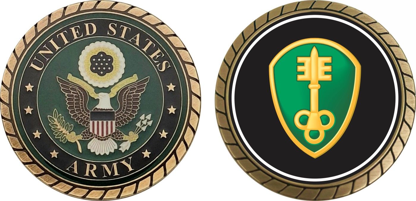 This 1 3/4” 300th Military Police Command Patch Challenge Coin is proudly offered by Militarybest. This Officially Licensed Army coin has beautiful enamel finish on one side and an organized crisp clean design on the opposite side.
