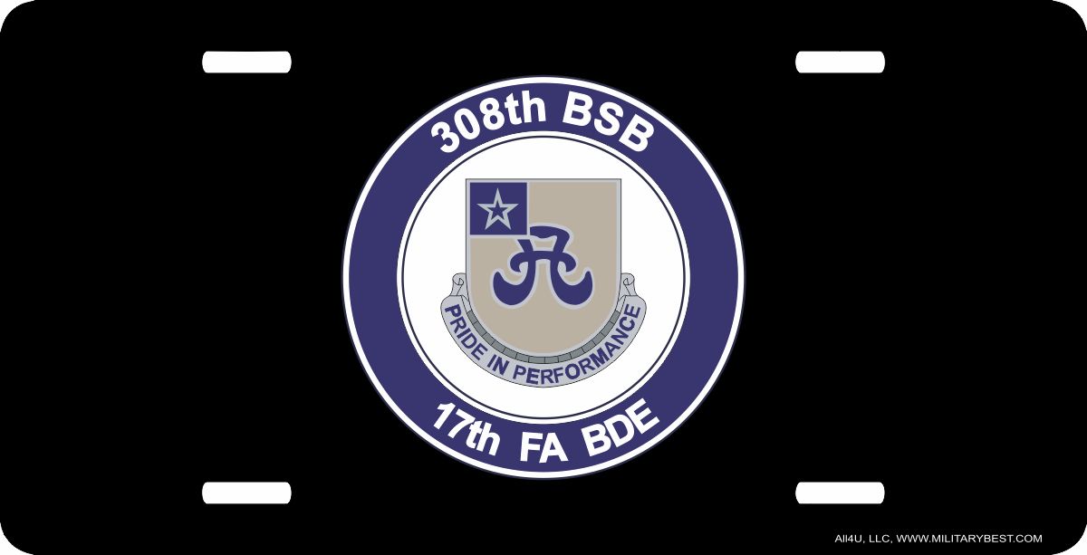 The images used on our license plates are sized to be as visible as possible. The image may be obstructed if the plate is used in combination with a license plate frame. To order your plate with a smaller image please notify us in the comments section at checkout. Enjoy your license plate!This 308th Brigade Support Battalion Round License Plate is made from heavy gauge aluminum and has a baked enamel finish to last for many years of use. Each plate measures 5 15/16" x 11 15/16". This license plate would make a wonderful addition to your collection or a great gift.