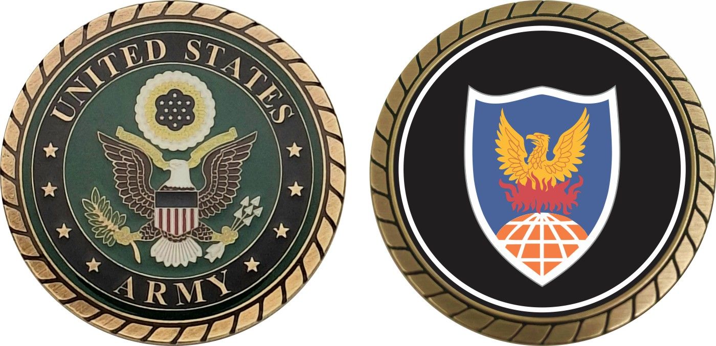 This 1 3/4” 311th Signal Command Patch Challenge Coin is proudly offered by Militarybest. This Officially Licensed Army coin has beautiful enamel finish on one side and an organized crisp clean design on the opposite side.