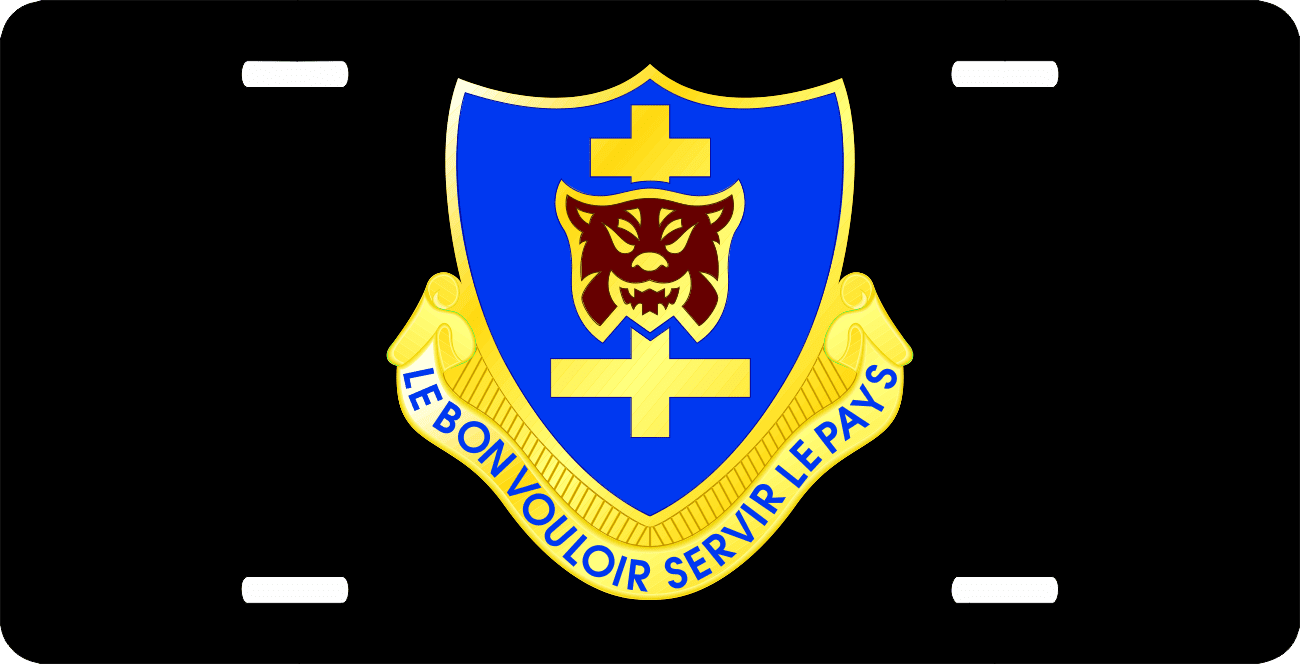 This 323rd Regiment Unit Crest License Plate is made from heavy gauge aluminum and has a baked enamel finish to last for many years of use. Each plate measures 5 15/16" x 11 15/16". This license plate would make a wonderful addition to your collection or a great gift.